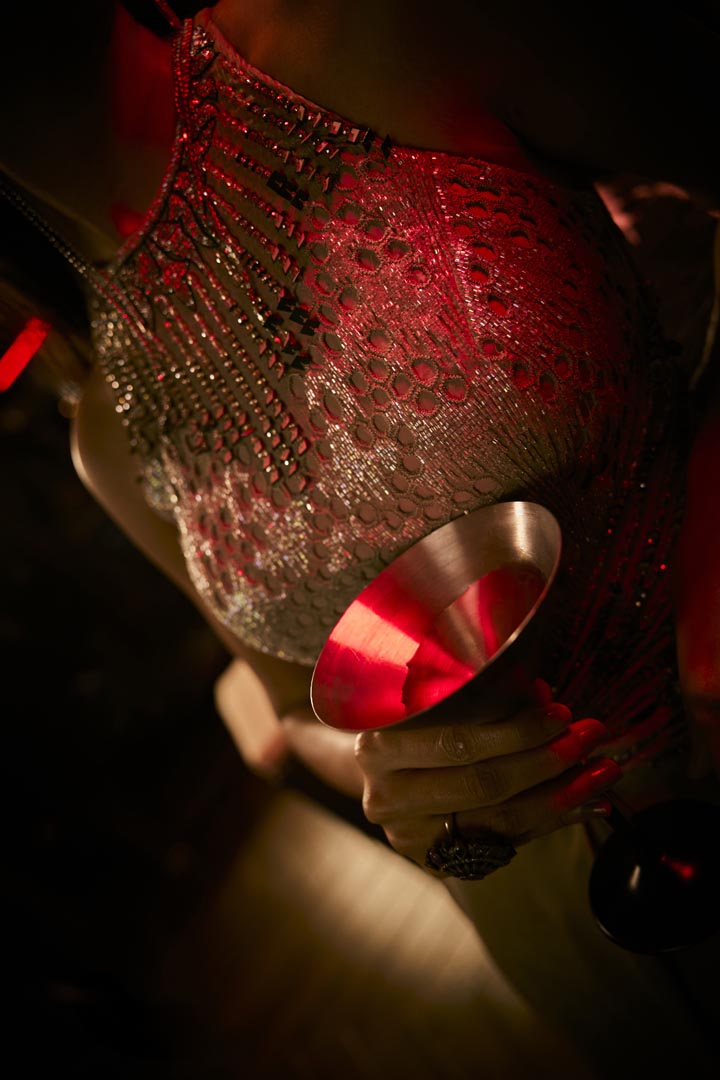 Crafted in taupe crushed shimmer fabric ,this jumpsuit gown captures the essence of contemporary elegance. The high-neck bodice is richly hand-embroidered with cutwork ,beads and sequins, creating a textured shimmer that beautifully catches the light. The structured waist flows into soft pleats, offering movement and grace.