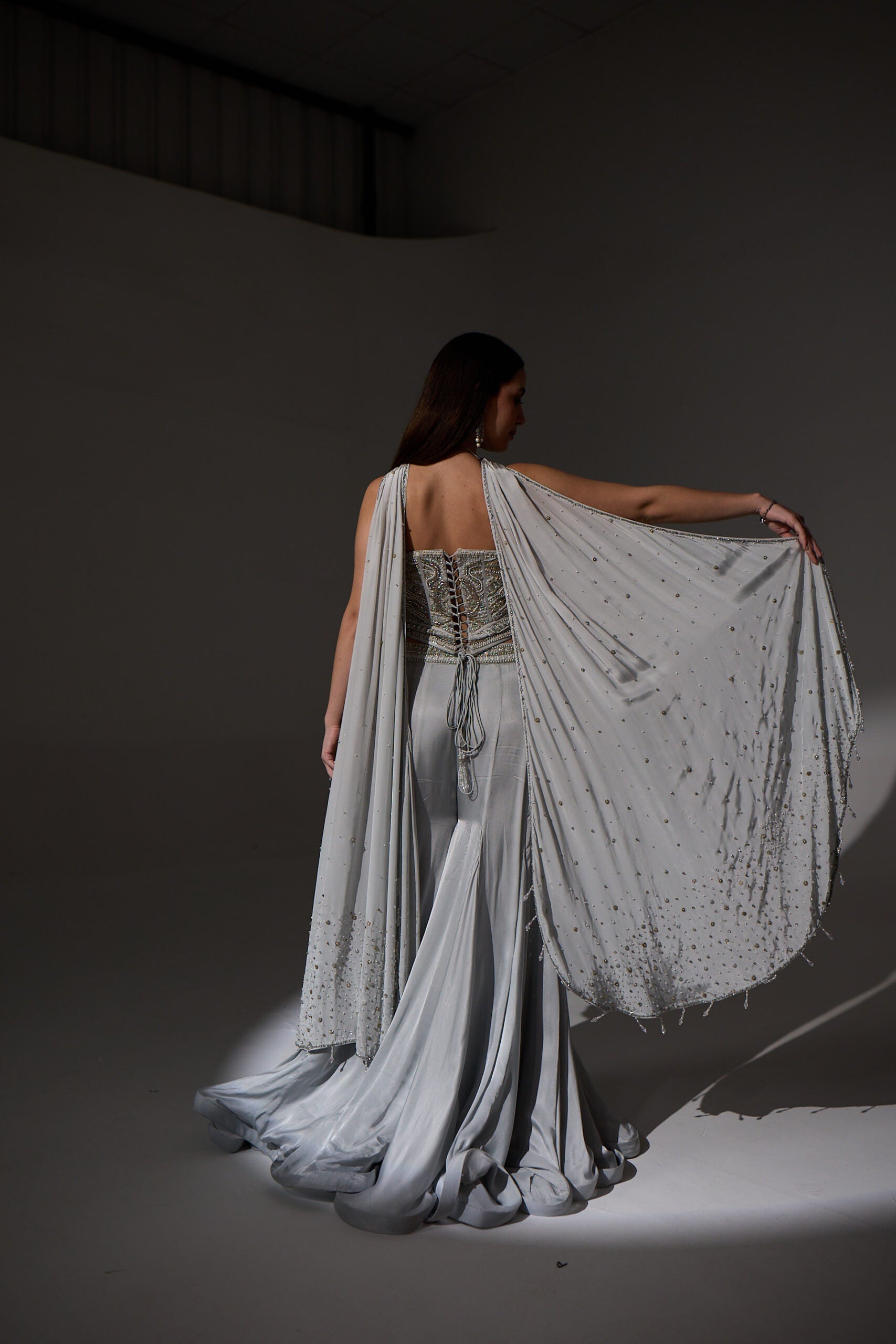 Perfect for intimate weddings, sangeets, cocktail nights, or festive gatherings this ensemble blends heritage craftsmanship with a couture edge.