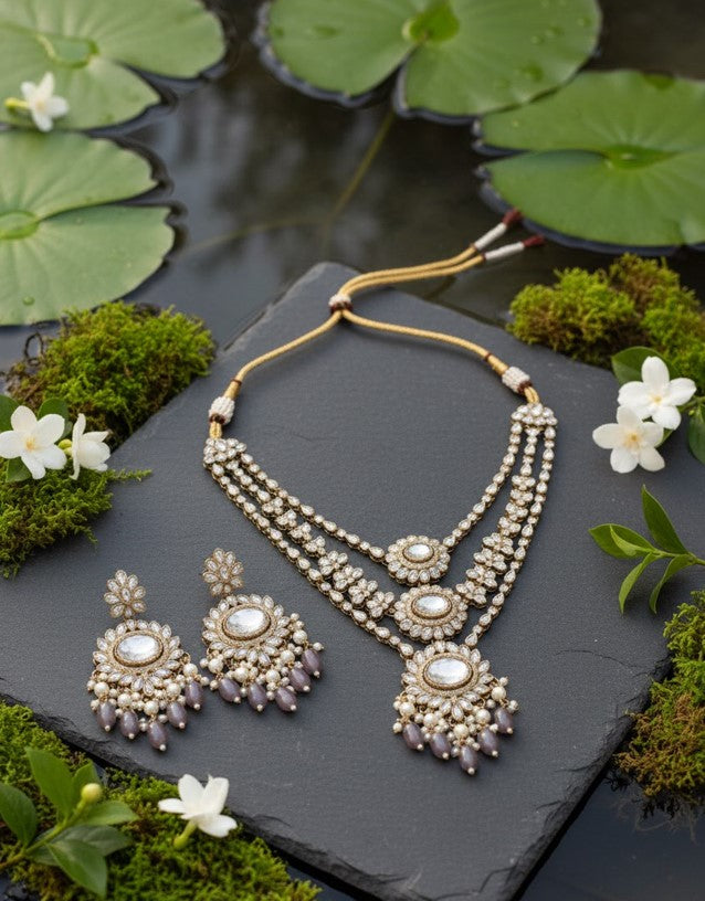 Embrace the artistry and elegance of traditional Indian jewelry with this magnificent set that promises to turn heads.
