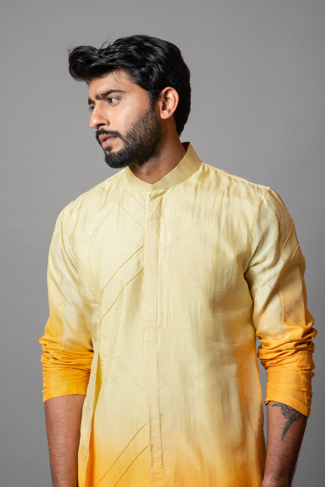 Kurta - Beige and yellow ombre, Pant pajama- Ivory |