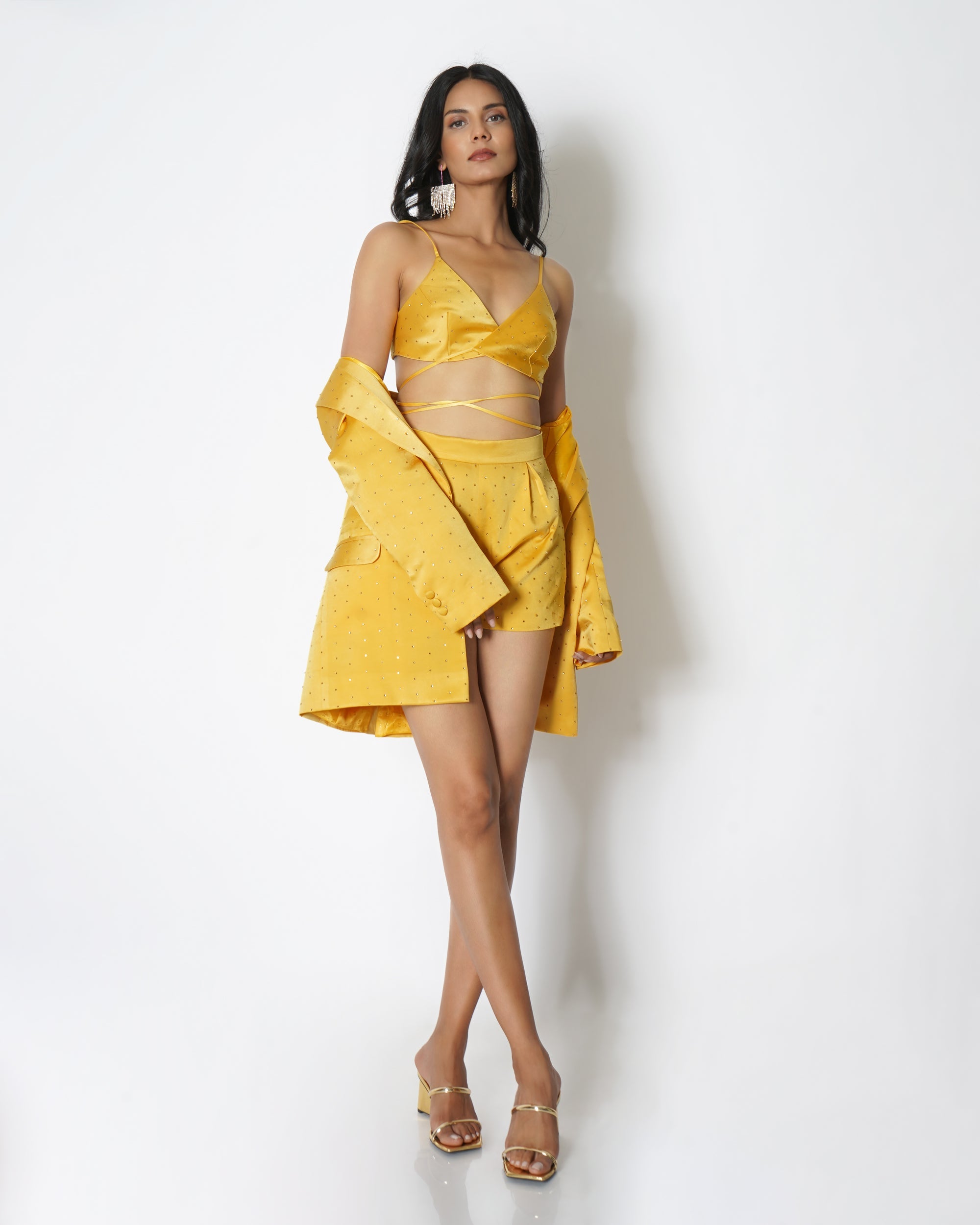 Bejewelled V-neck bralette with adjustable tie straps.