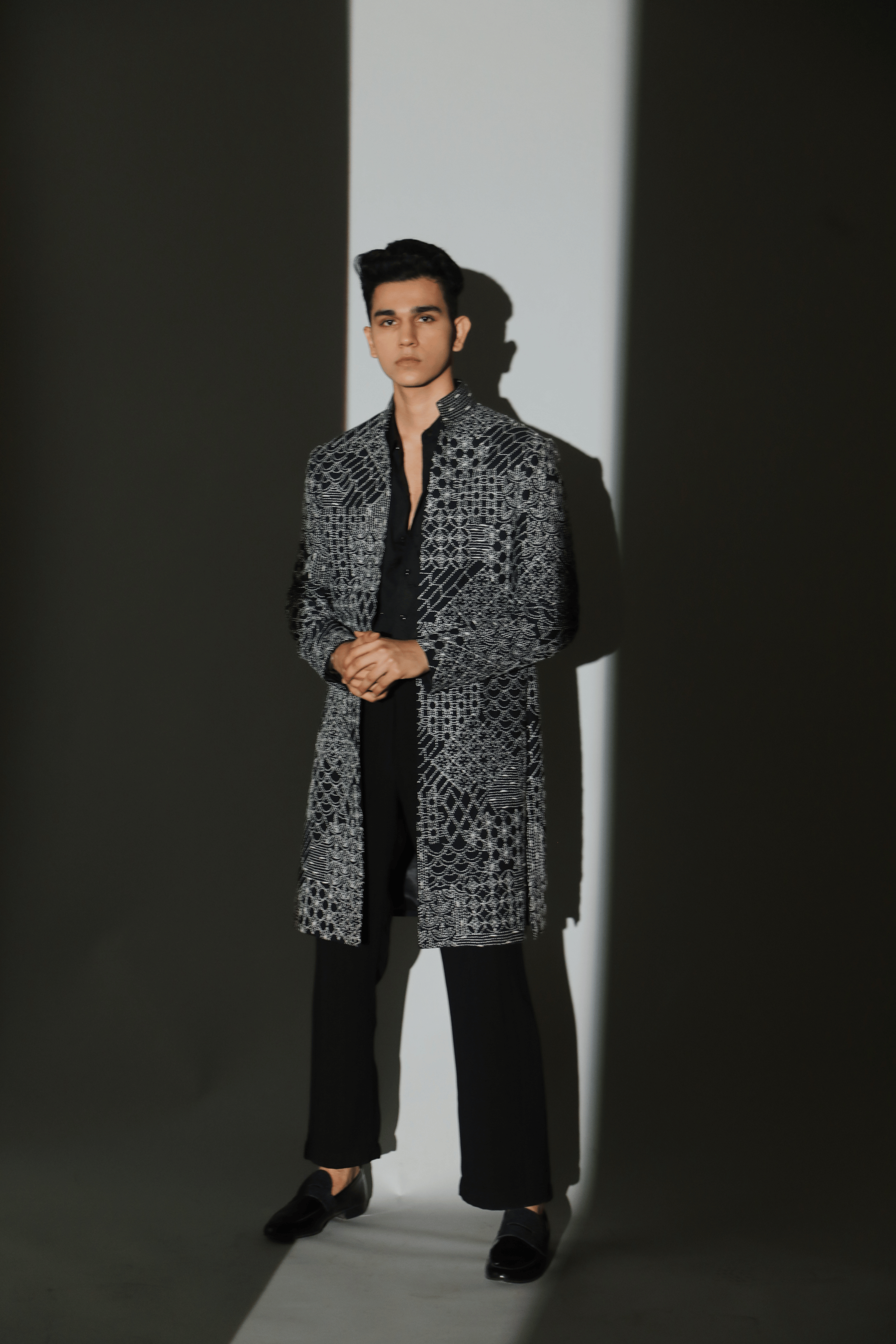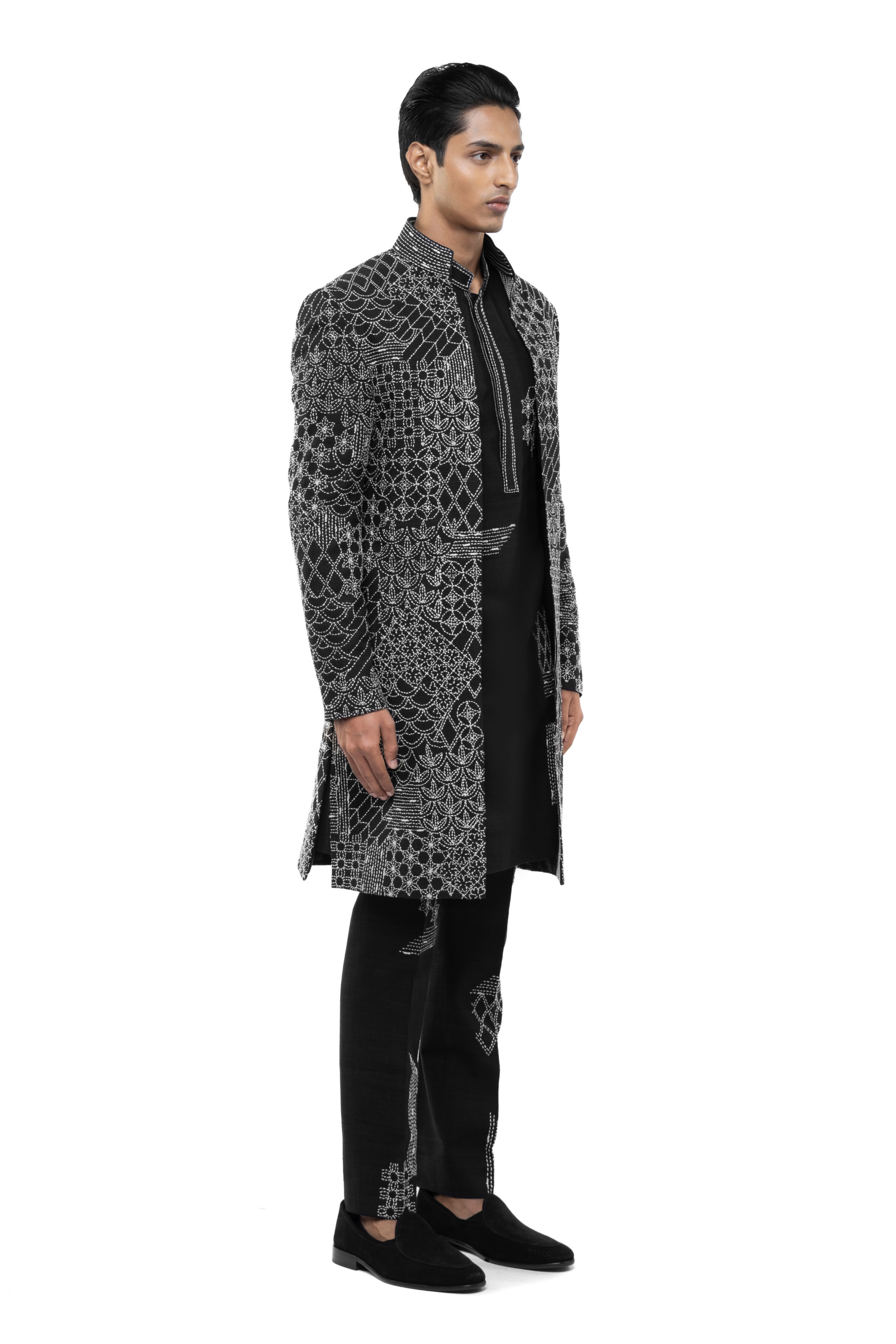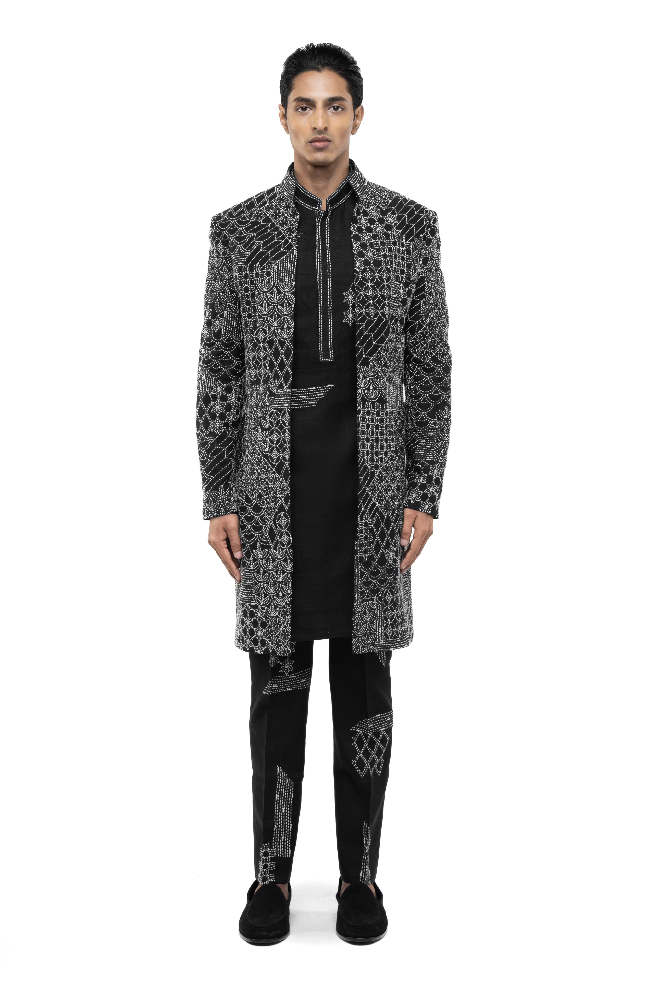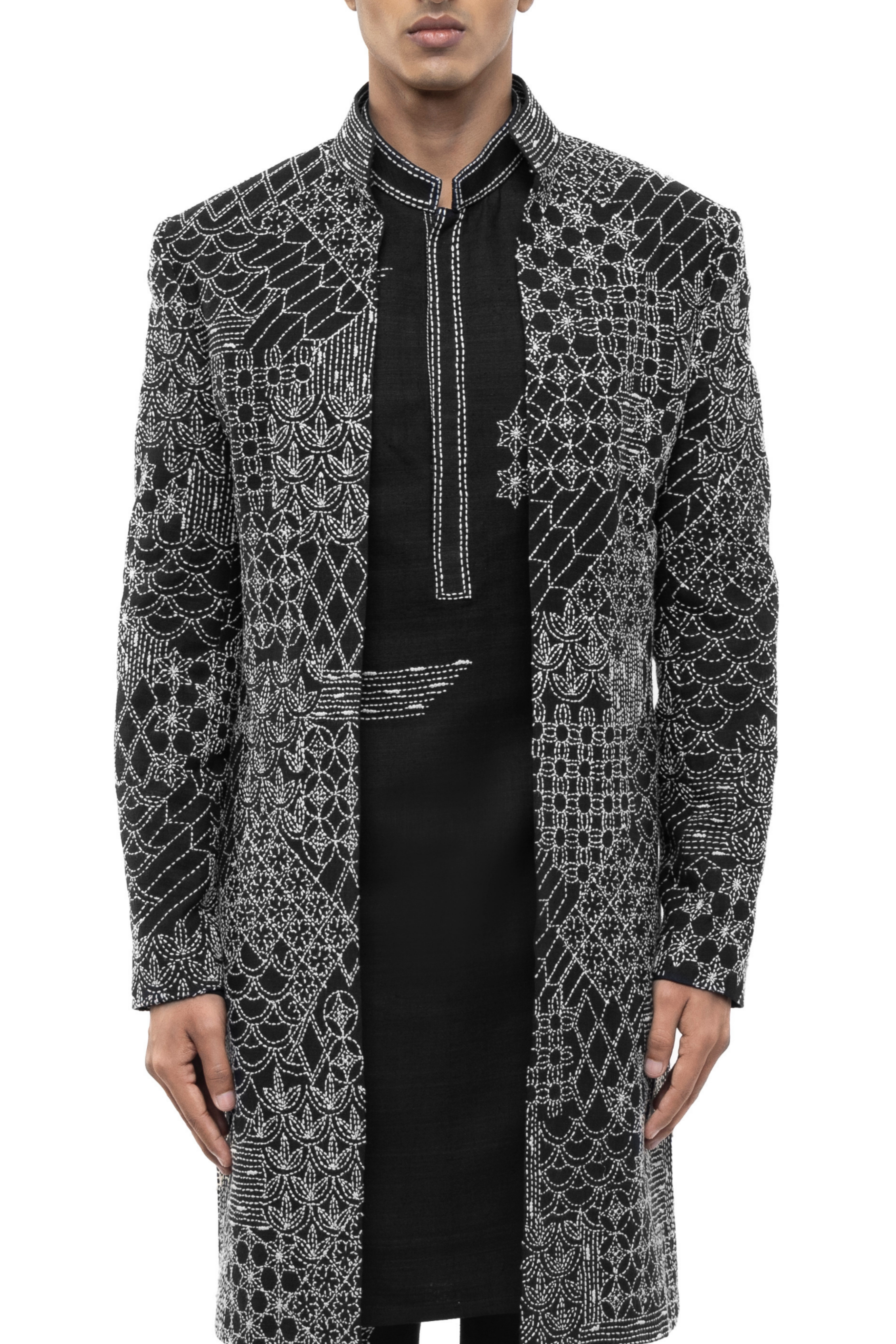 Featuring thread embroidery on premium linen, this sherwani is a sophisticated option for reception, sangeet, ethnic, or festive occasions. Team it with embroidered footwear for a regal look.