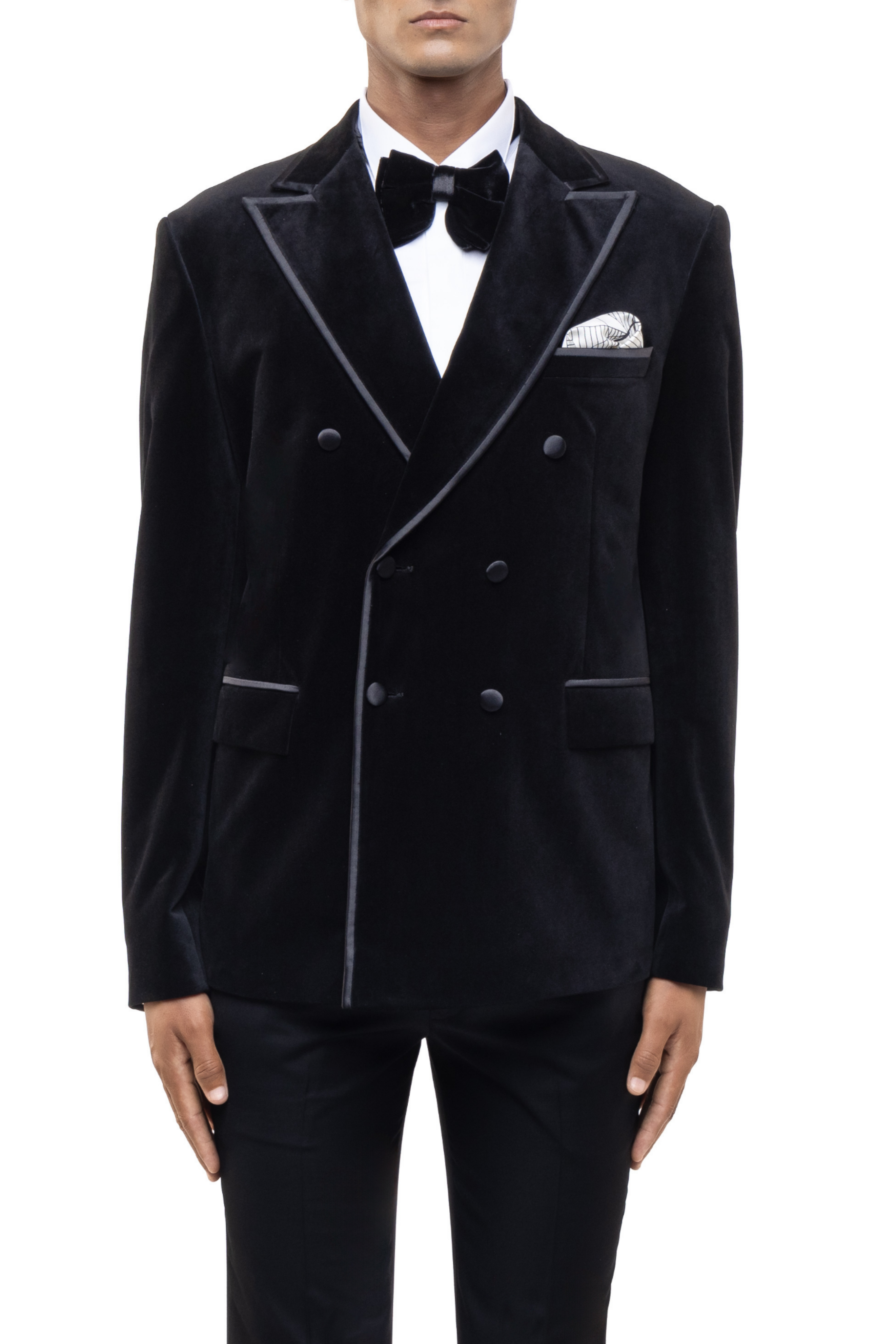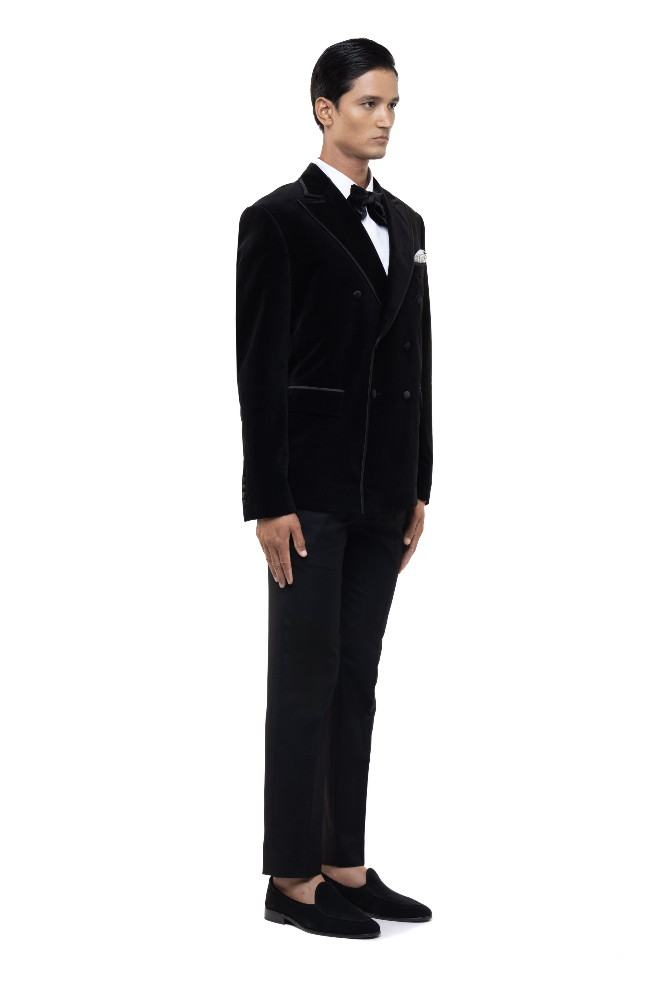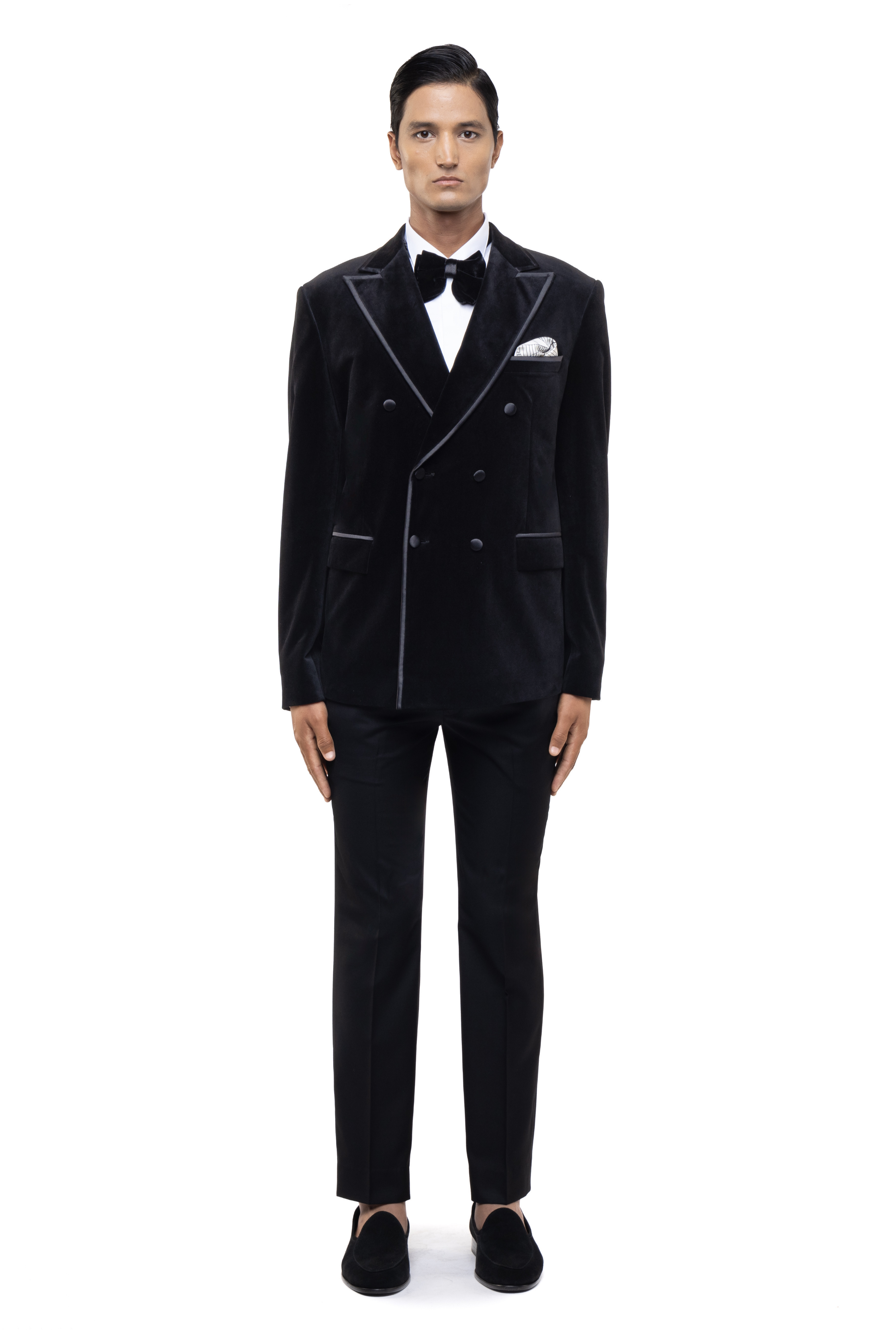 Designed for sangeet nights and cocktail soirees, this tuxedo exudes luxury with its double-breasted design and velvet texture. Team it with a silk tie and a statement watch for an effortlessly dashing appearance.