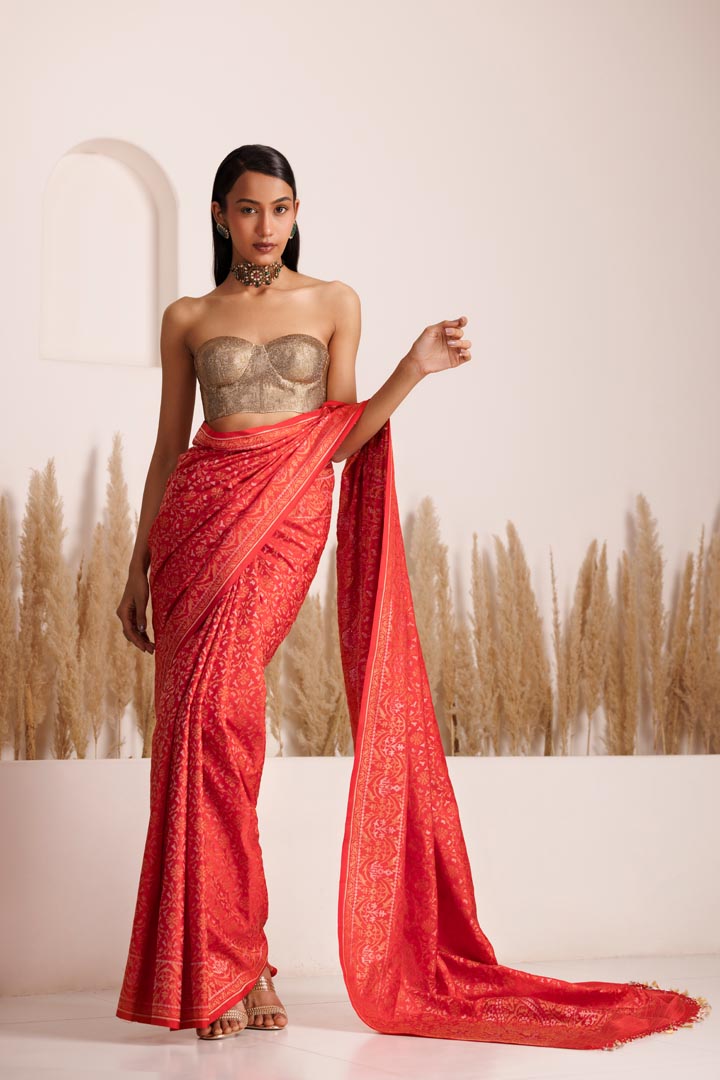 Fabric : Silk Jamdani (saree) and Silk Satin (bustier)