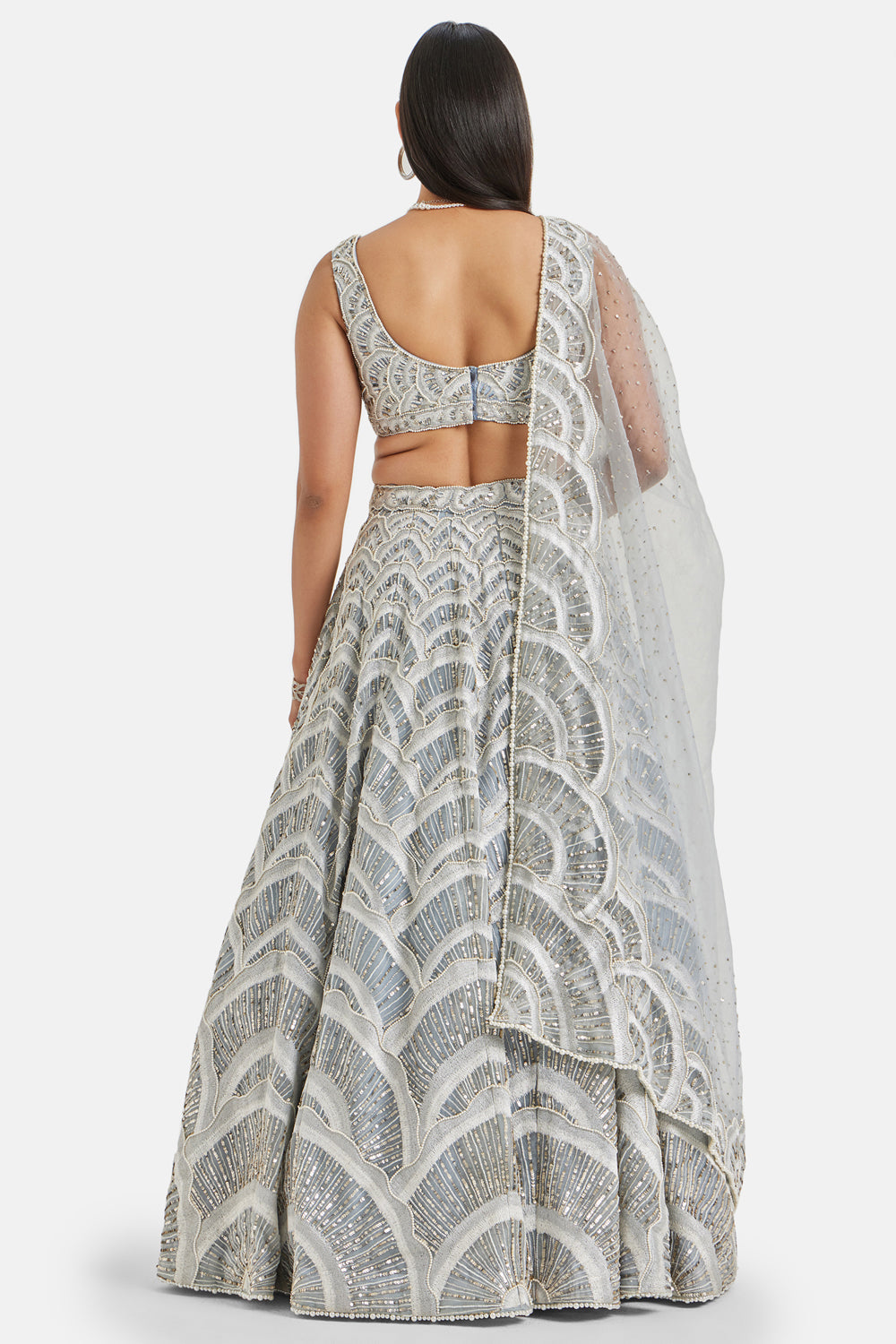 Drawing inspiration from the mesmerizing seashells, the gorgeous odette lehenga set exudes a sense of timeless beauty. the set features a hand-adorned lehenga with a matching blouse and a gorgeous dupatta finished with an embroidered border.