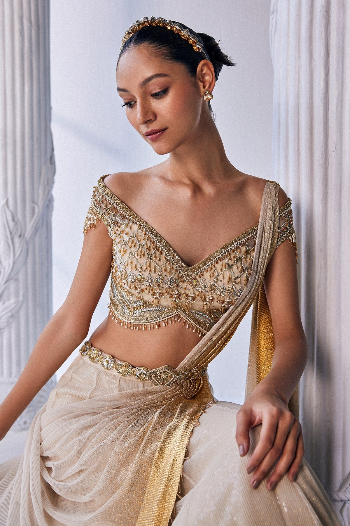 Fabric: Net, Luxurious Sequins & Pleated Gold Foil Lycra
