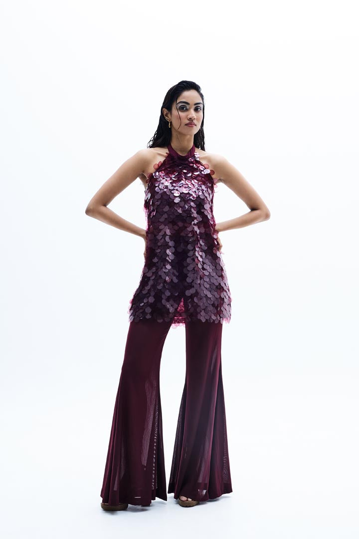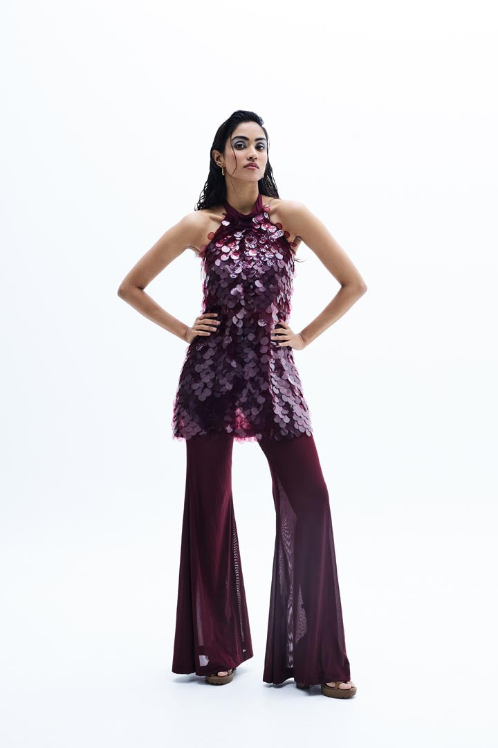 Introducing our stunning sequins top with a flattering halter neckline, beautifully paired with a pants featuring a high-waist band. This versatile matching set is perfect for your vacation wardrobe, combining flowy elegance with a touch of flared drama. Elevate your summer style with this gorgeous ensemble, designed to make you feel fabulous wherever you go!