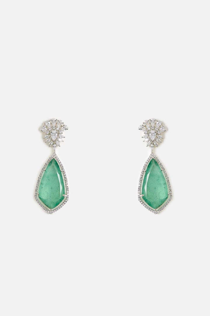 This Emerald Elegance Necklace Set features teardrop-shaped green stones with sparkling accents, paired with matching earrings. A timeless piece that adds grace and charm to festive and bridal looks.