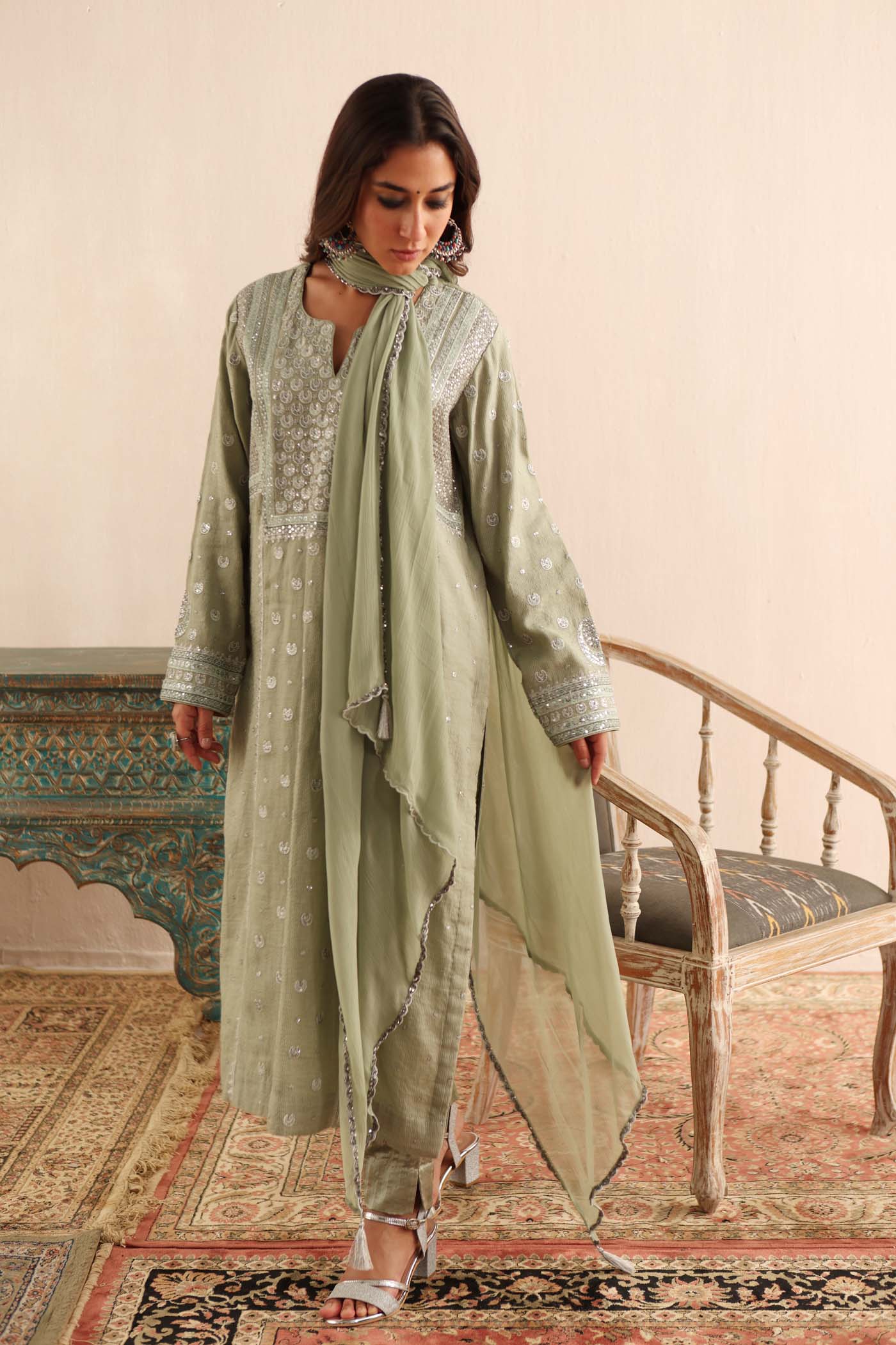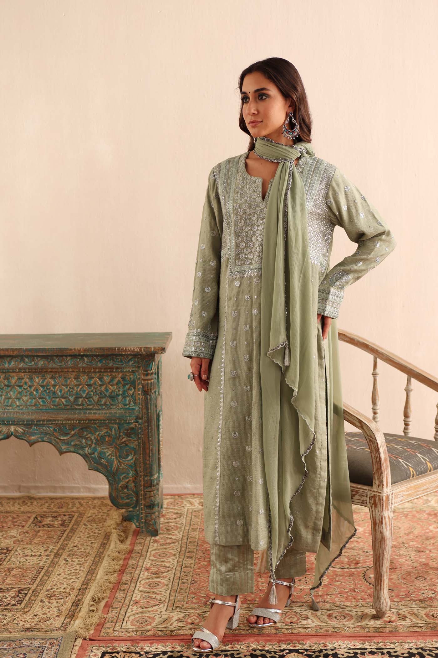 Embellishments: Embroidered With Coloured & Metallic Threads, & Sequins