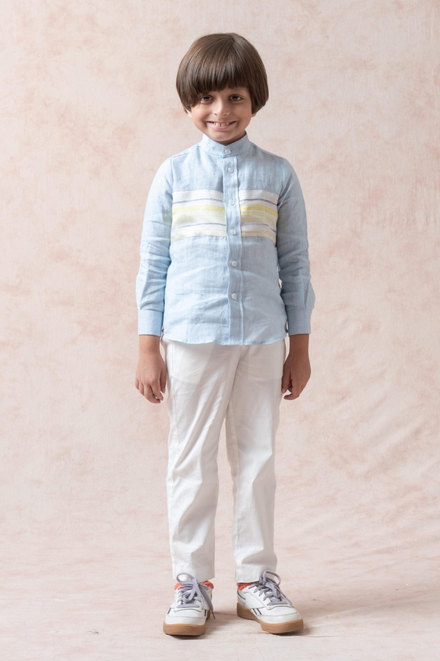 Pure linen shirt with stripes highlighted panel