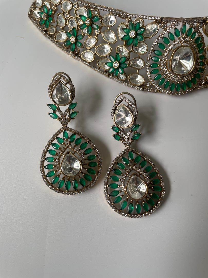 Gold Finish Utsav Choker Set with Stone Accents , Necklace: L:1.4 , W:9