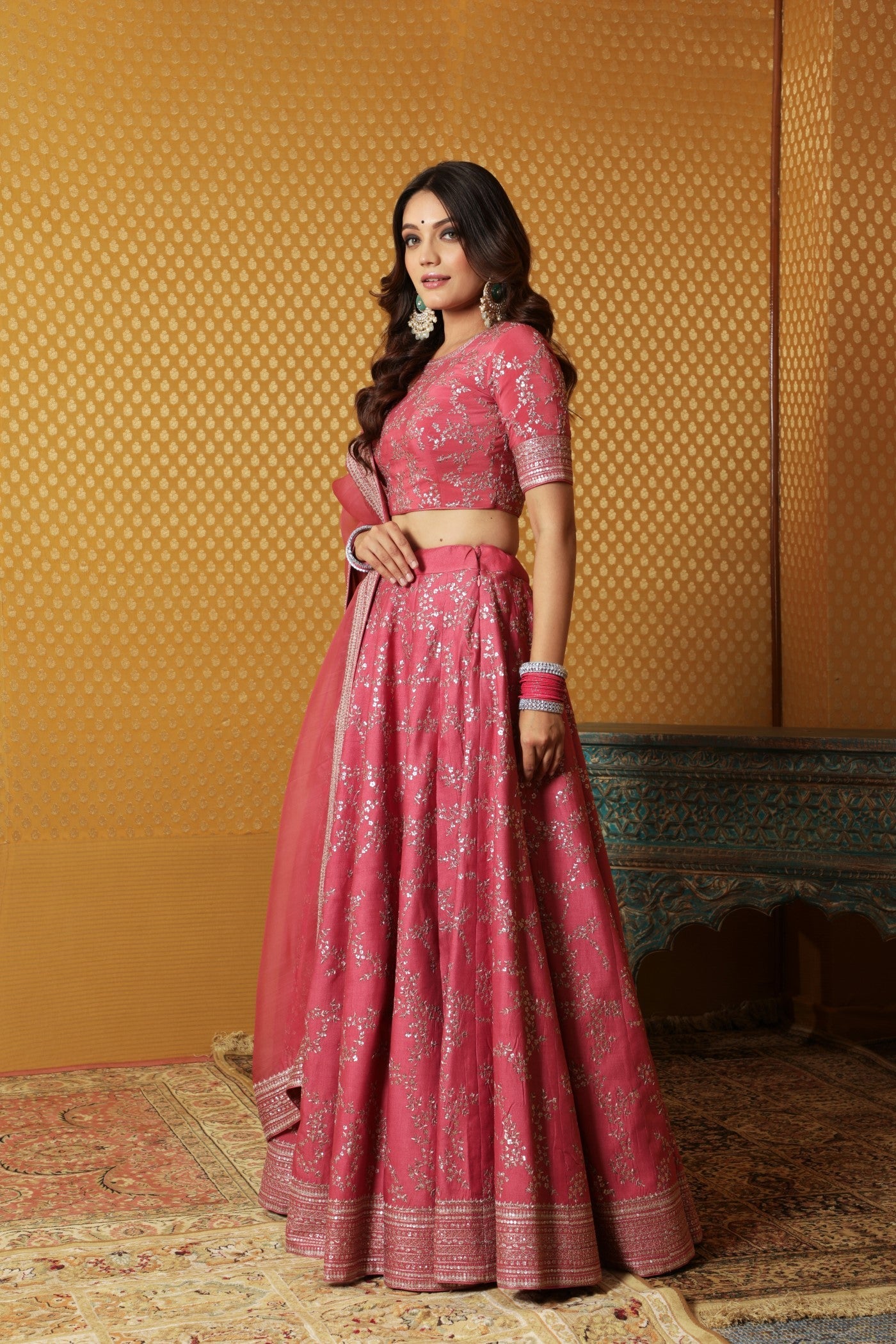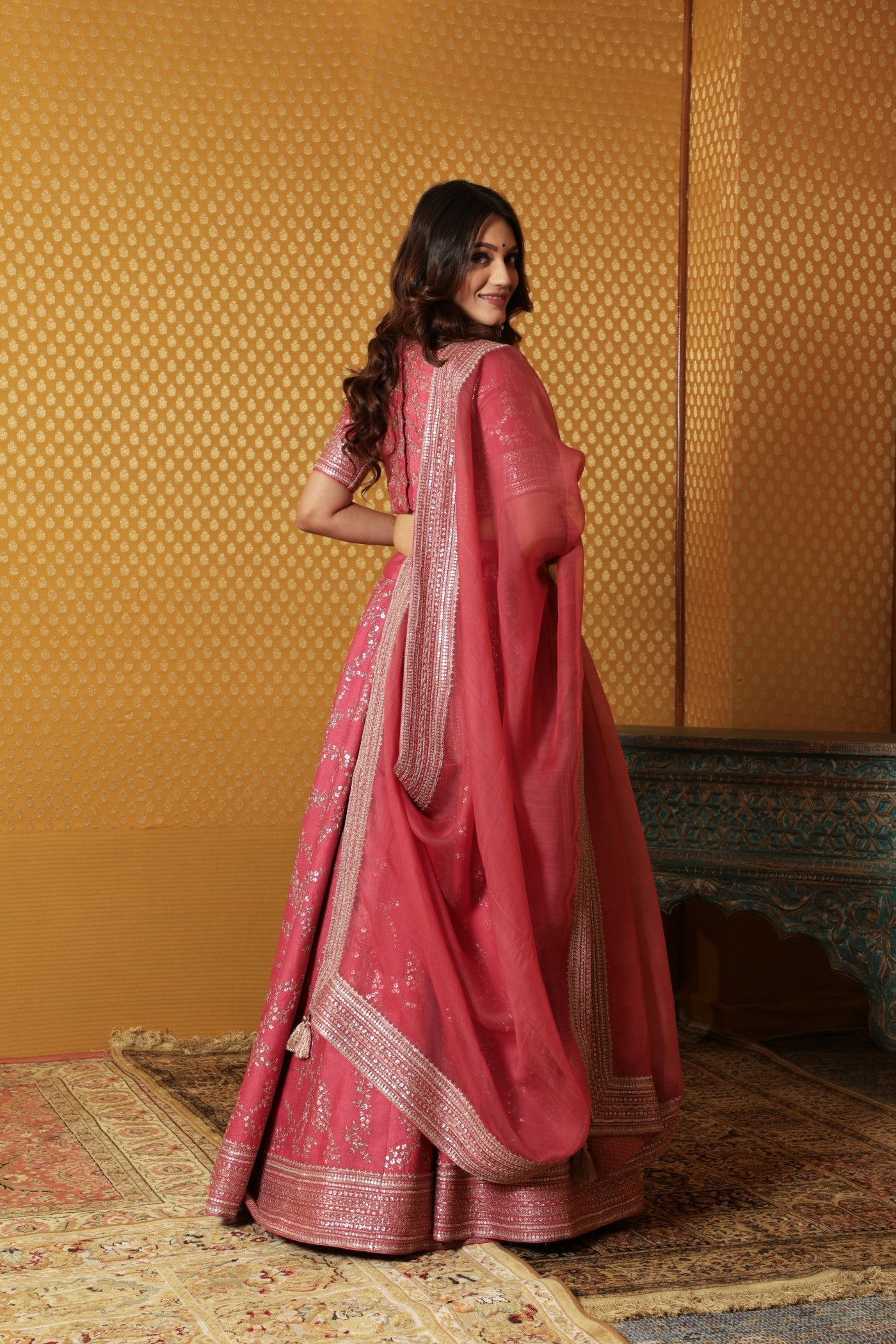 Embellishments: Completely Hand-Embroidered In Zardozi With Coloured & Metallic Threads, Mukaish, Cutdana, Pearls & Sequins