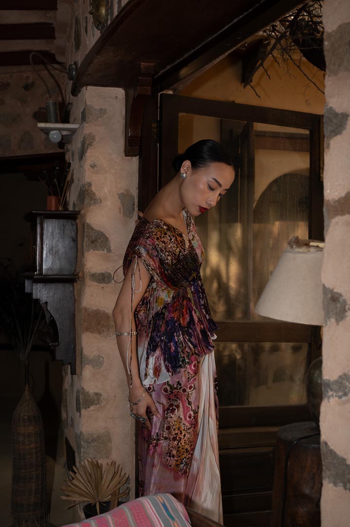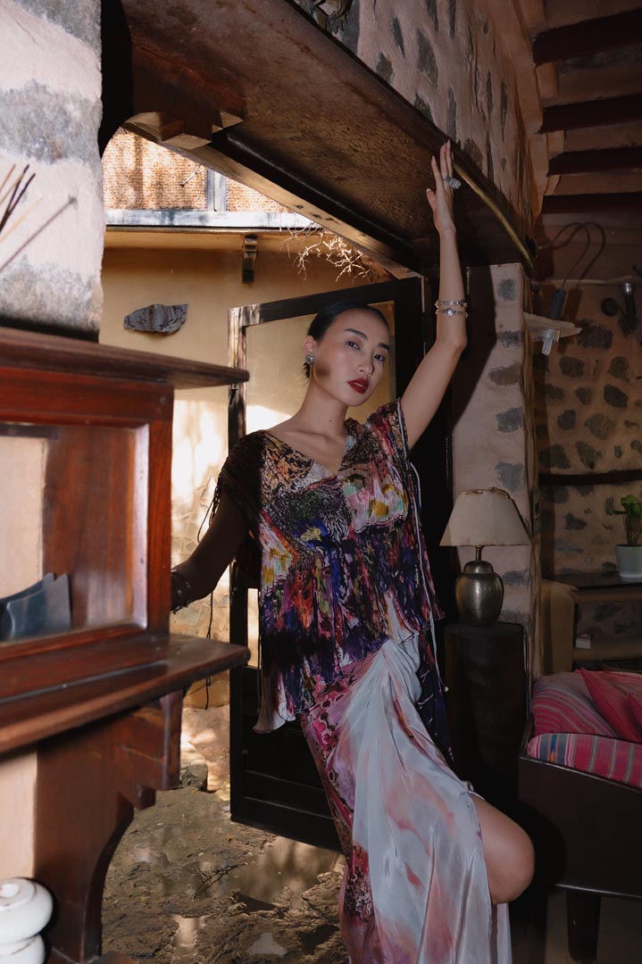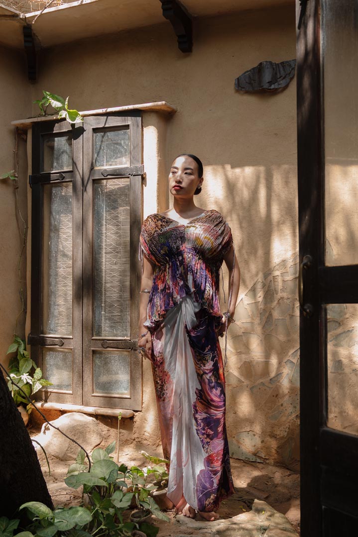 Lana pleated top, pair this up with any relaxed pant or skirt as shown in the image.