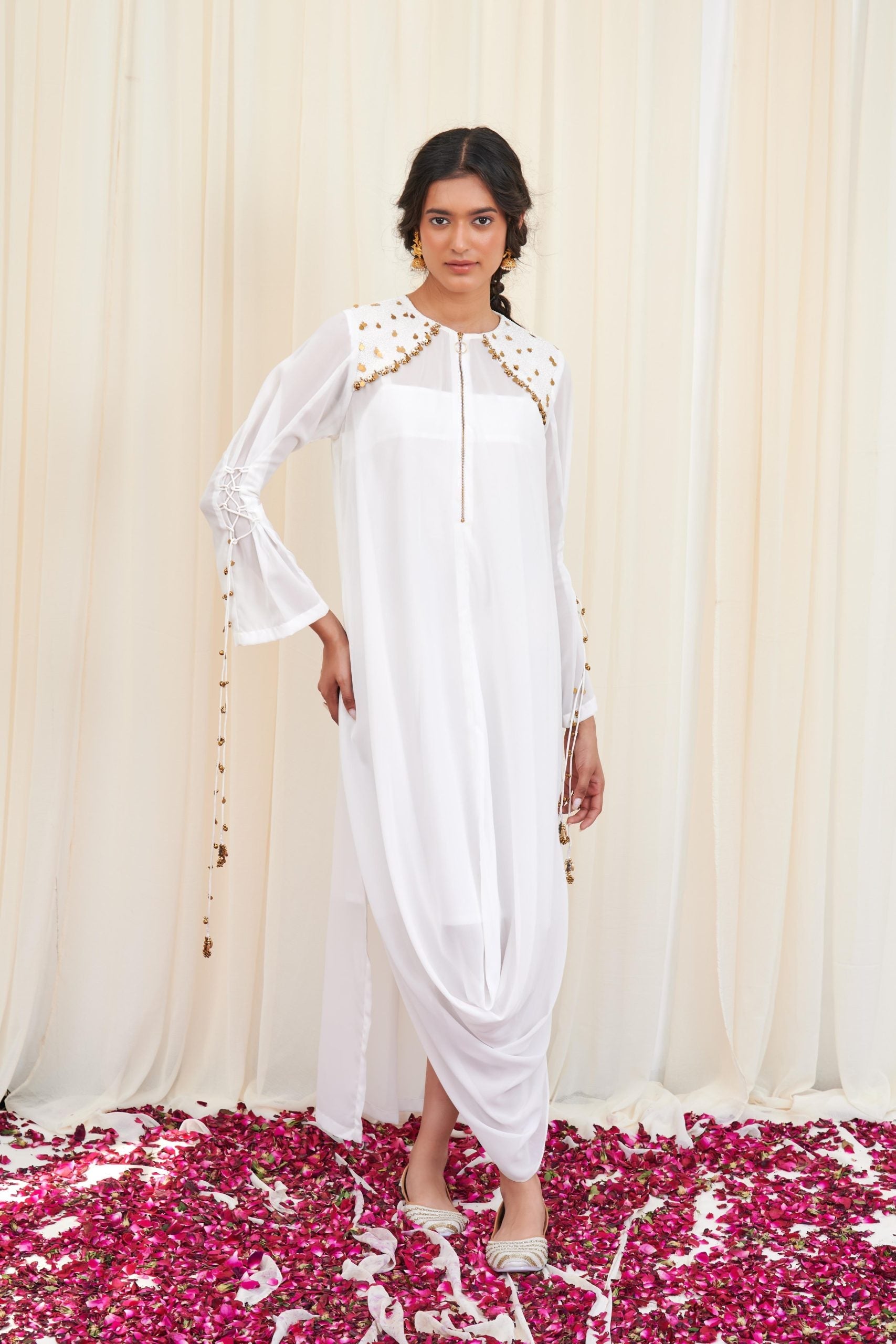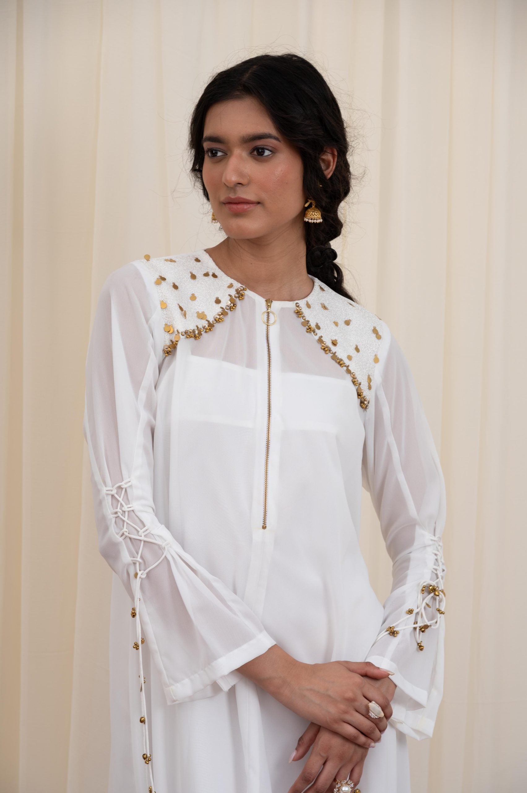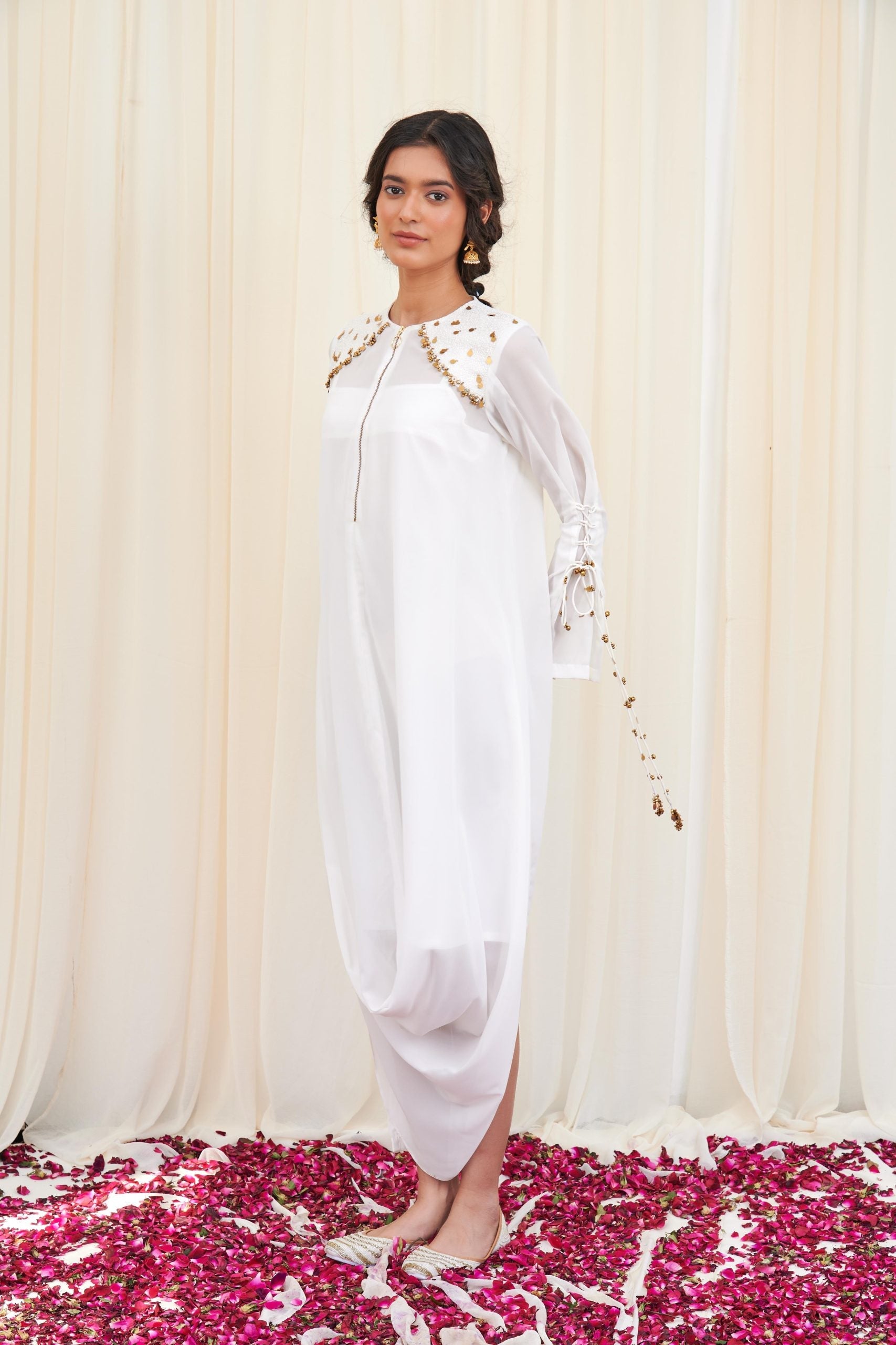 a blend of hand embroidery and hand done dori finishings. The breezy Ice