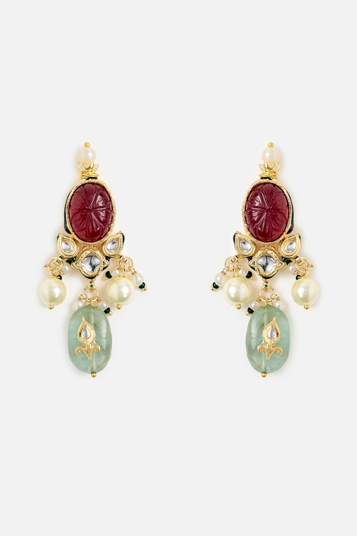 This multicolor choker necklace set features vibrant gemstones and intricate craftsmanship, paired with matching earrings. Perfect for weddings, parties, and festive occasions with regal charm.