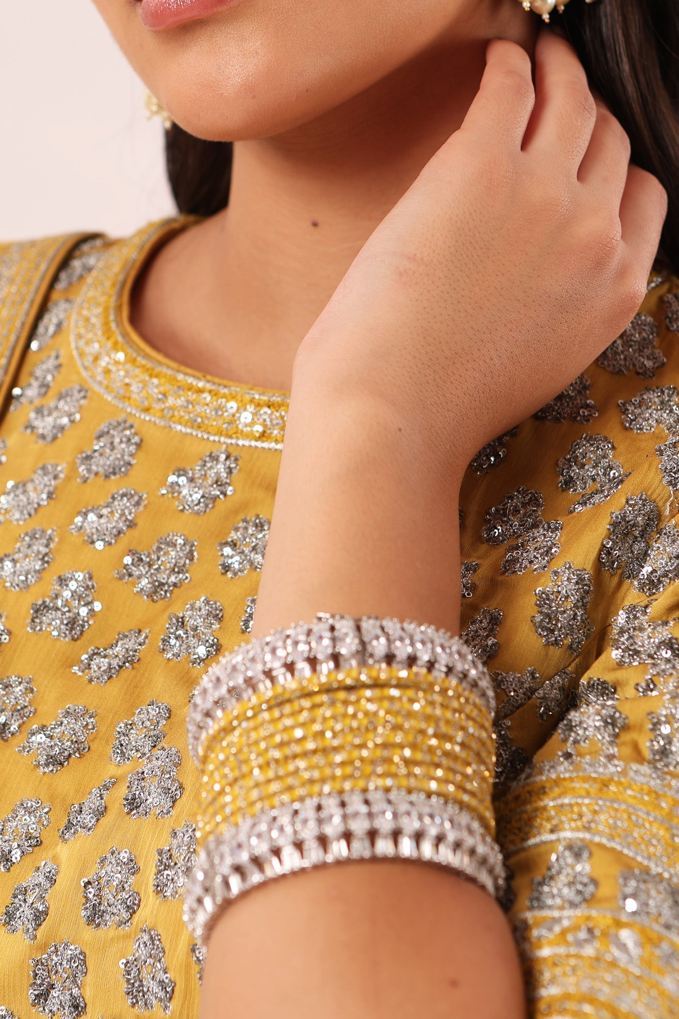 Embellishments: Hand-Embroidered With Coloured & Metallic Threads, Cutdana & Sequins