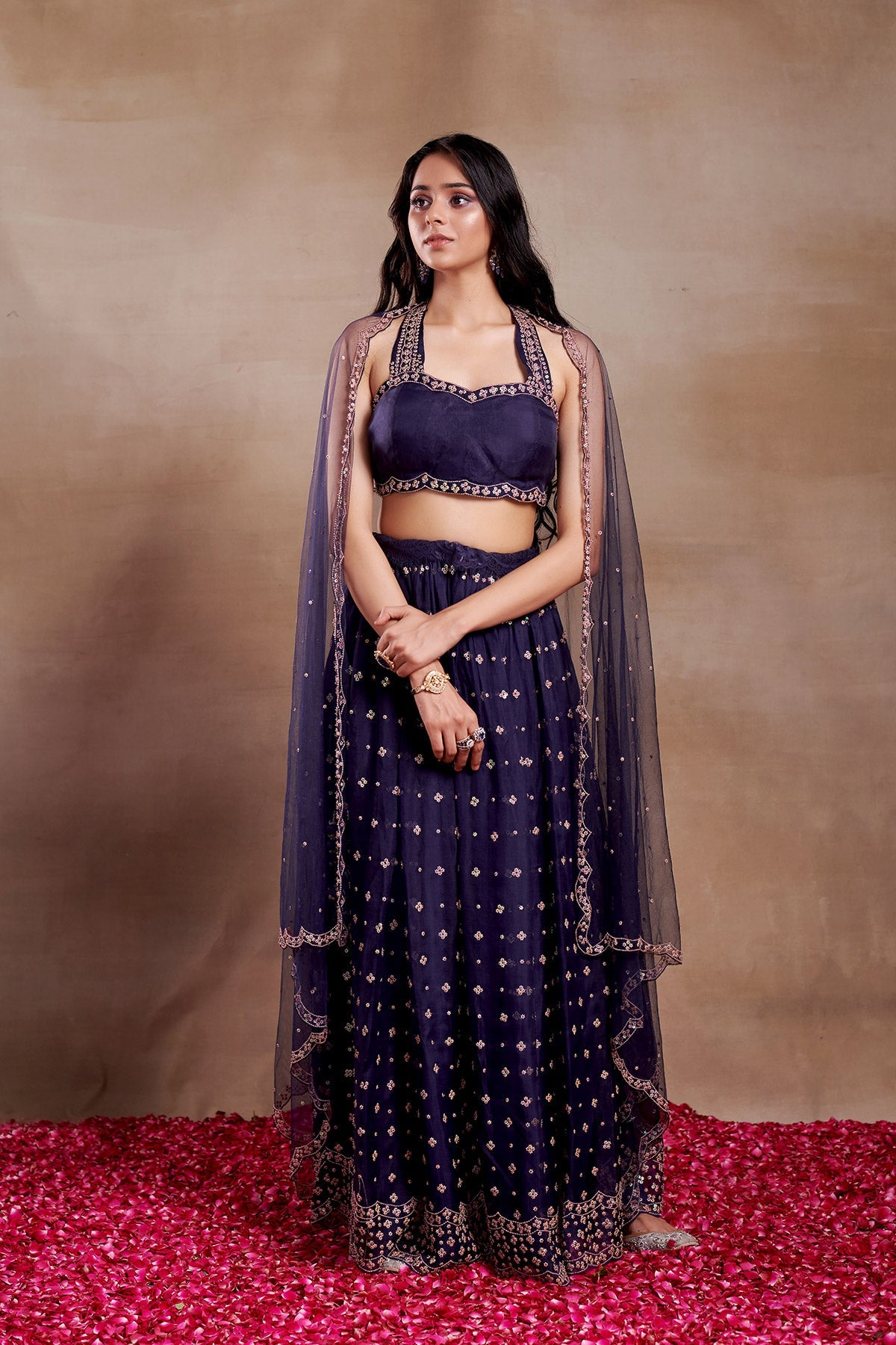 FLOWER EMBROIDERED ORGANZA LEHENGA SET