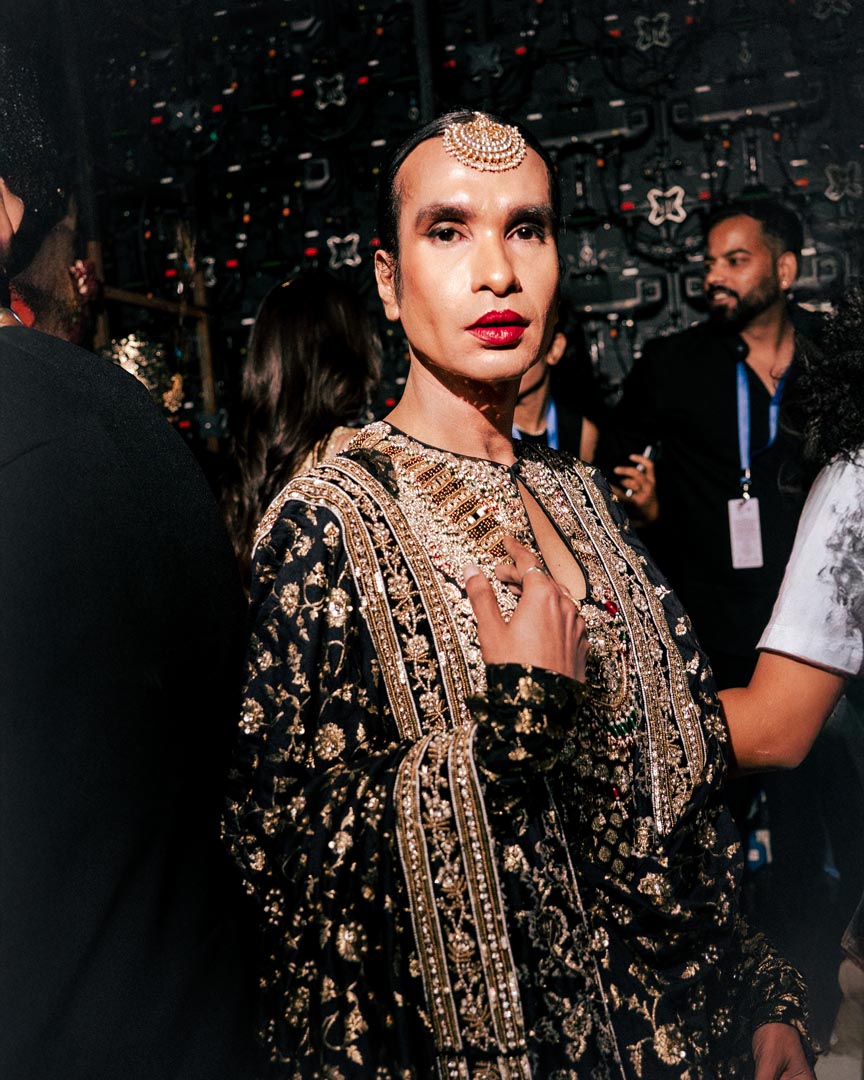This black brocade anarkali features a jewelled and embellished stone neckline with intricate detailing. The ensemble showcases rich brocade panels in tones of black with metallic accents, paired with a matching dupatta. Perfect for luxury bridal wear and grand celebrations.