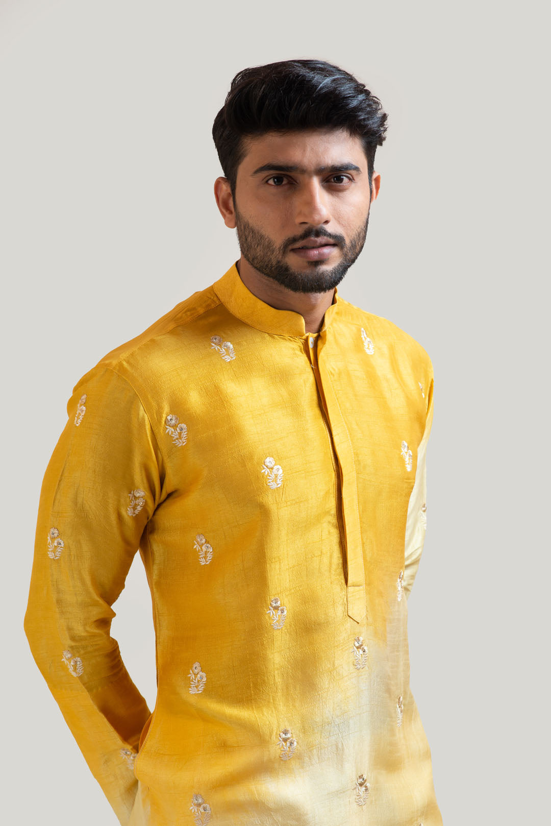 Featuring a Ombre Yellow Embroidered Kurta Set . This piece consists of a kurta & a pant. Length : Kurta 40" & Pants 40".