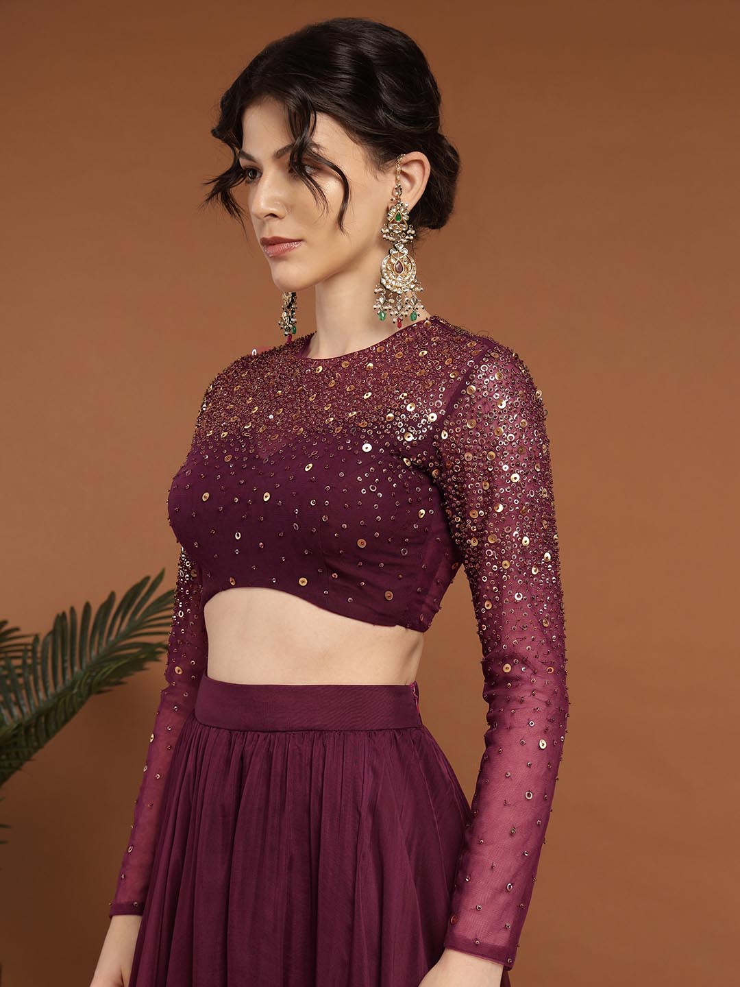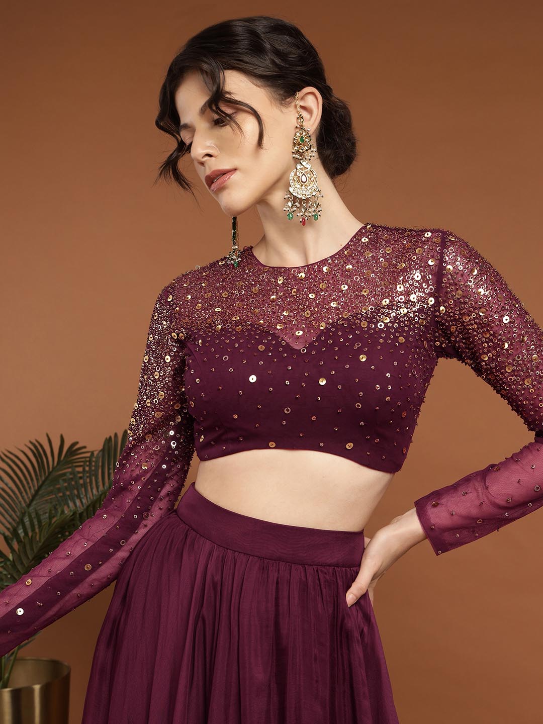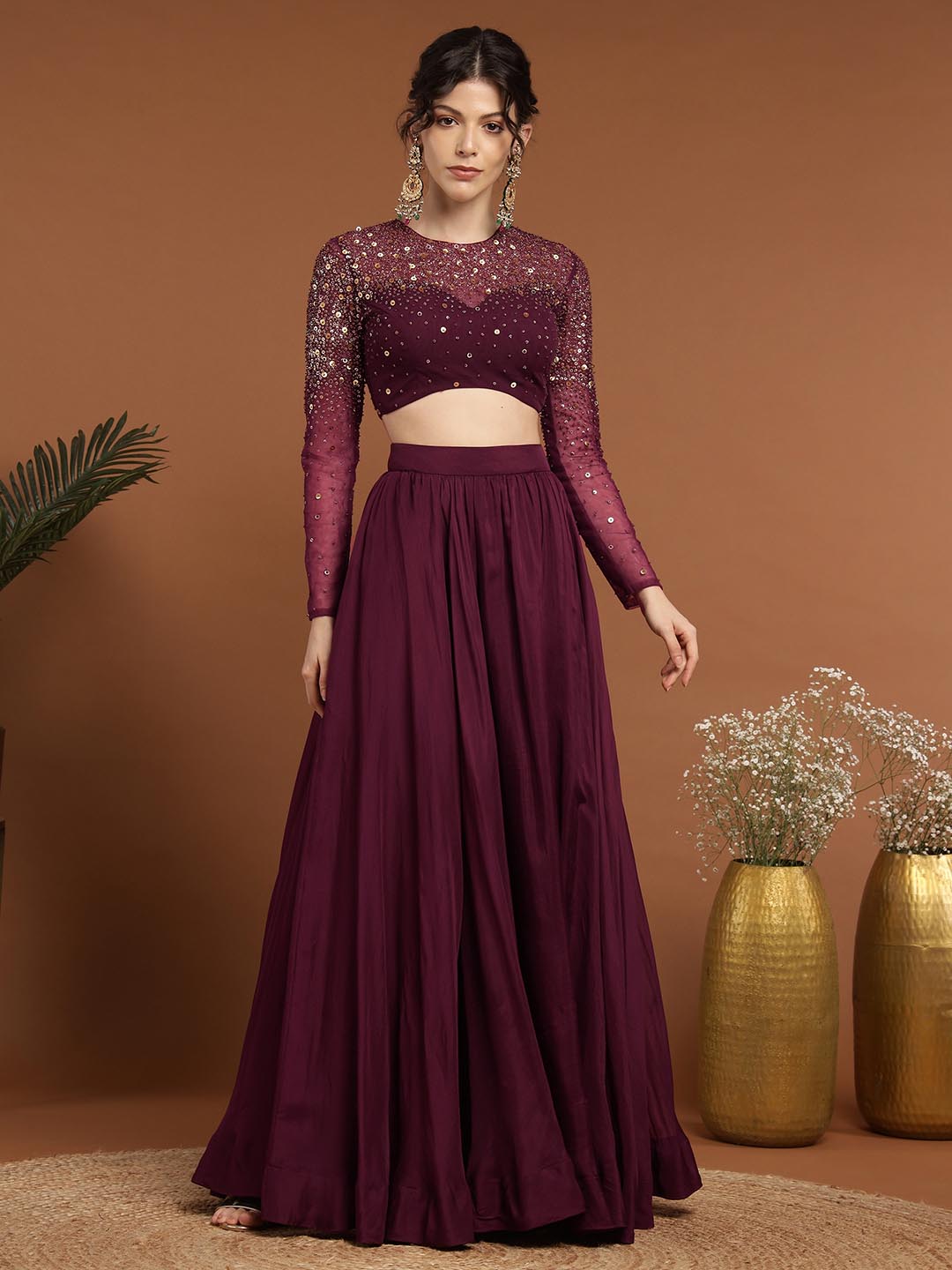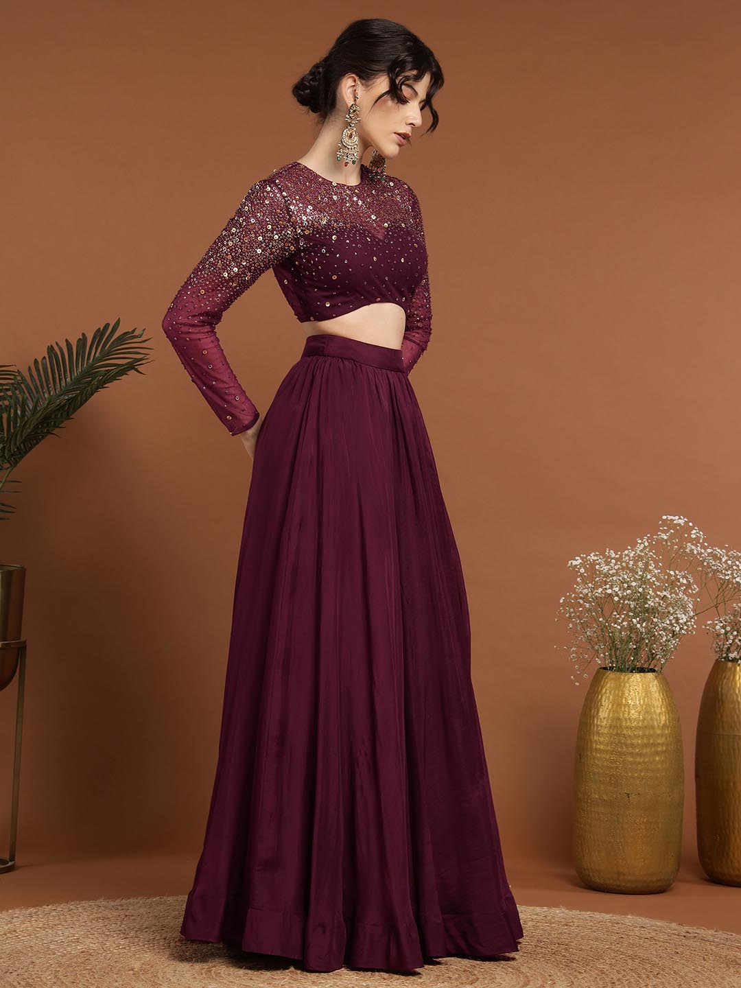 Experience the unmatched elegance of the Padmahasta Set, meticulously crafted in lush organza and net. This luxurious ensemble, with its deep, rich wine hue, radiates a regal charm that’s perfect for any sophisticated occasion. Featuring a stunning deep back and intricate embroidery, the Padmahasta Set combines timeless design with exquisite craftsmanship. Elevate your style with this one-of-a-kind piece, designed for those who appreciate refined elegance and high-quality detailing.