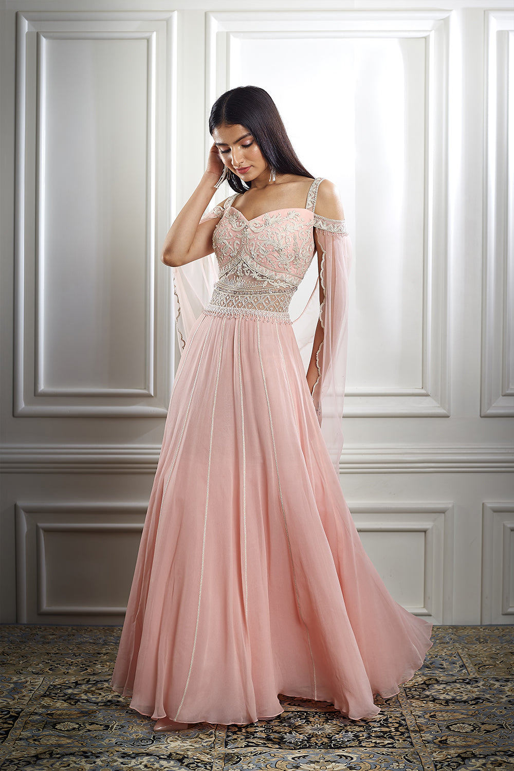 STYLING: Exude timeless charm in this Peach Pink Dori and Hand Embroidered Anarkali, a stunning choice for formal occasions and traditional celebrations.
