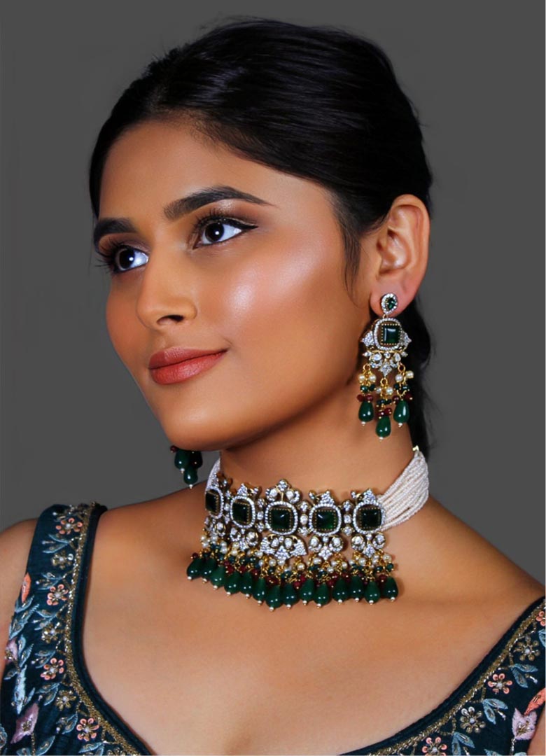 Pearl Stringing with Kundan Motifs Choker Set , Necklace