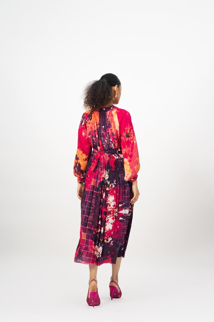 Halter neck full sleeves pleated below knee length dress comes along with belt