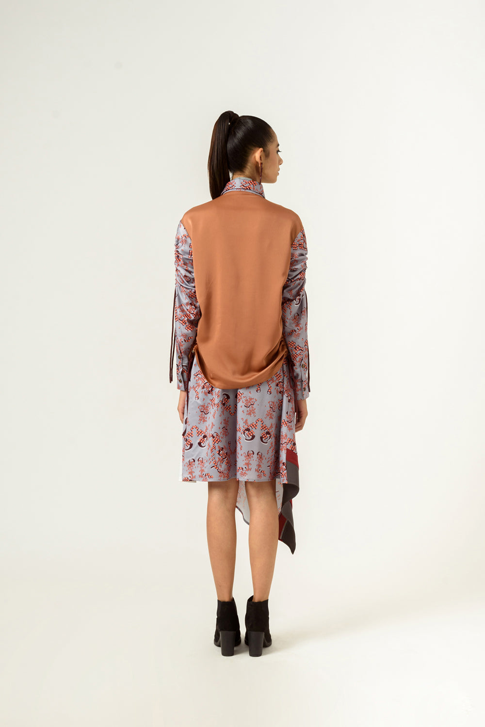 velvet satin and the grey in banana crepe. the skirt has an elastic waistband and can be styled in various ways.