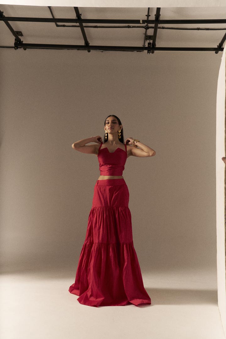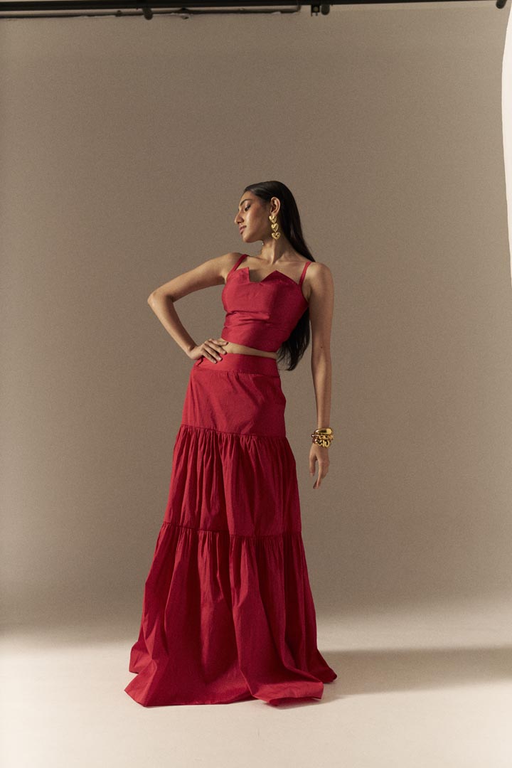 Introducing our stunning taffeta top with a flattering W neckline, beautifully paired with a tiered maxi skirt featuring a high-waist band. This versatile matching set is perfect for your vacation wardrobe, combining flowy elegance with a touch of flared drama. Elevate your summer style with this gorgeous ensemble, designed to make you feel fabulous wherever you go!