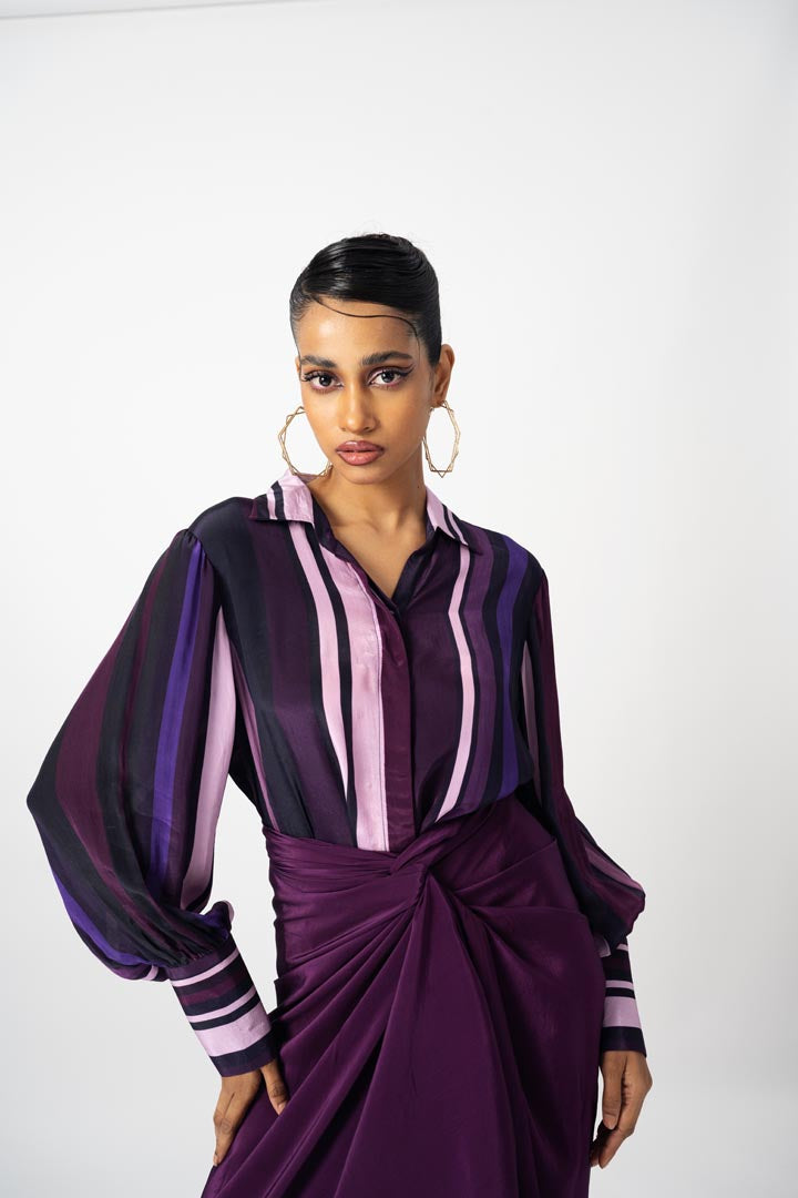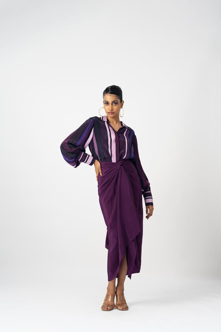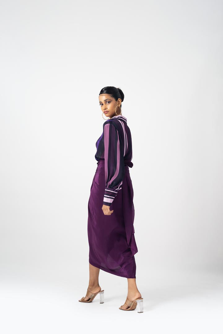 Tie up wrap skirt with cuffed shirt