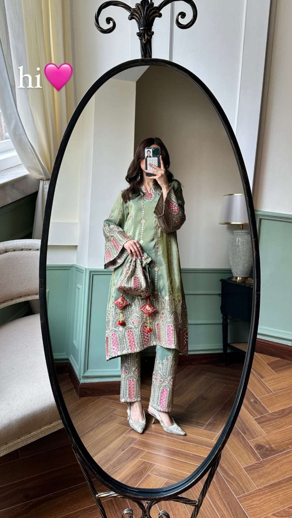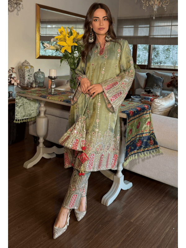 Discover effortless elegance with our Tissue 3 Piece Kurta Set. This exquisite ensemble features a delicately woven tissue kurta, offering a lightweight and breathable feel. Paired with matching trousers and a flowing dupatta, the set is perfect for festive occasions. The subtle sheen of the fabric adds a touch of sophistication, while the intricate details enhance its charm. Elevate your ethnic wardrobe with this versatile and stylish kurta set!