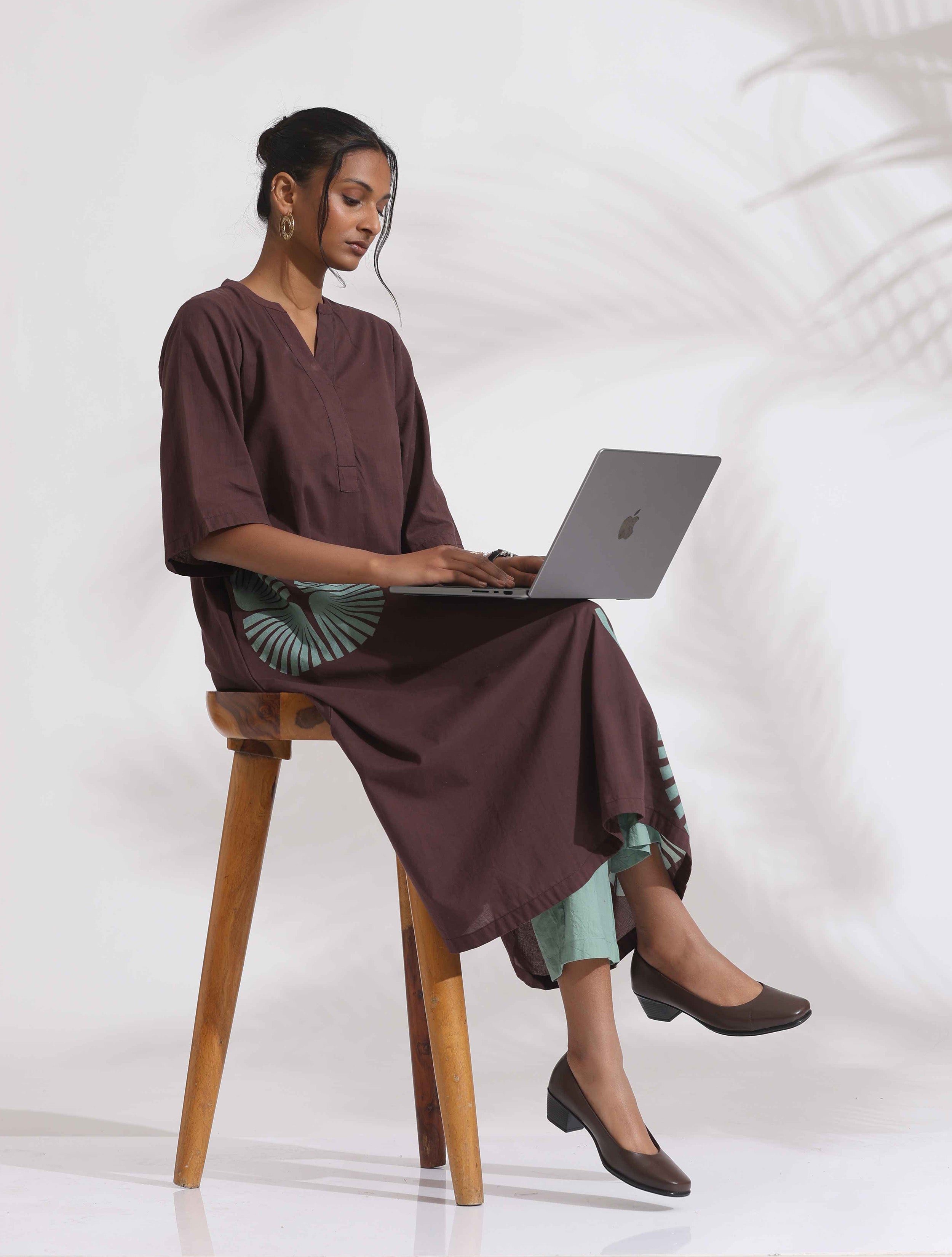 - Elevate your style by Indulging in this captivating cola cotton print flared kurta, paired with matching cola cotton pants. This ensemble is a perfect fusion of chic design and everyday comfort, tailored to make you feel confident and stylish, whether you’re attending a casual outing or a semi-formal event.