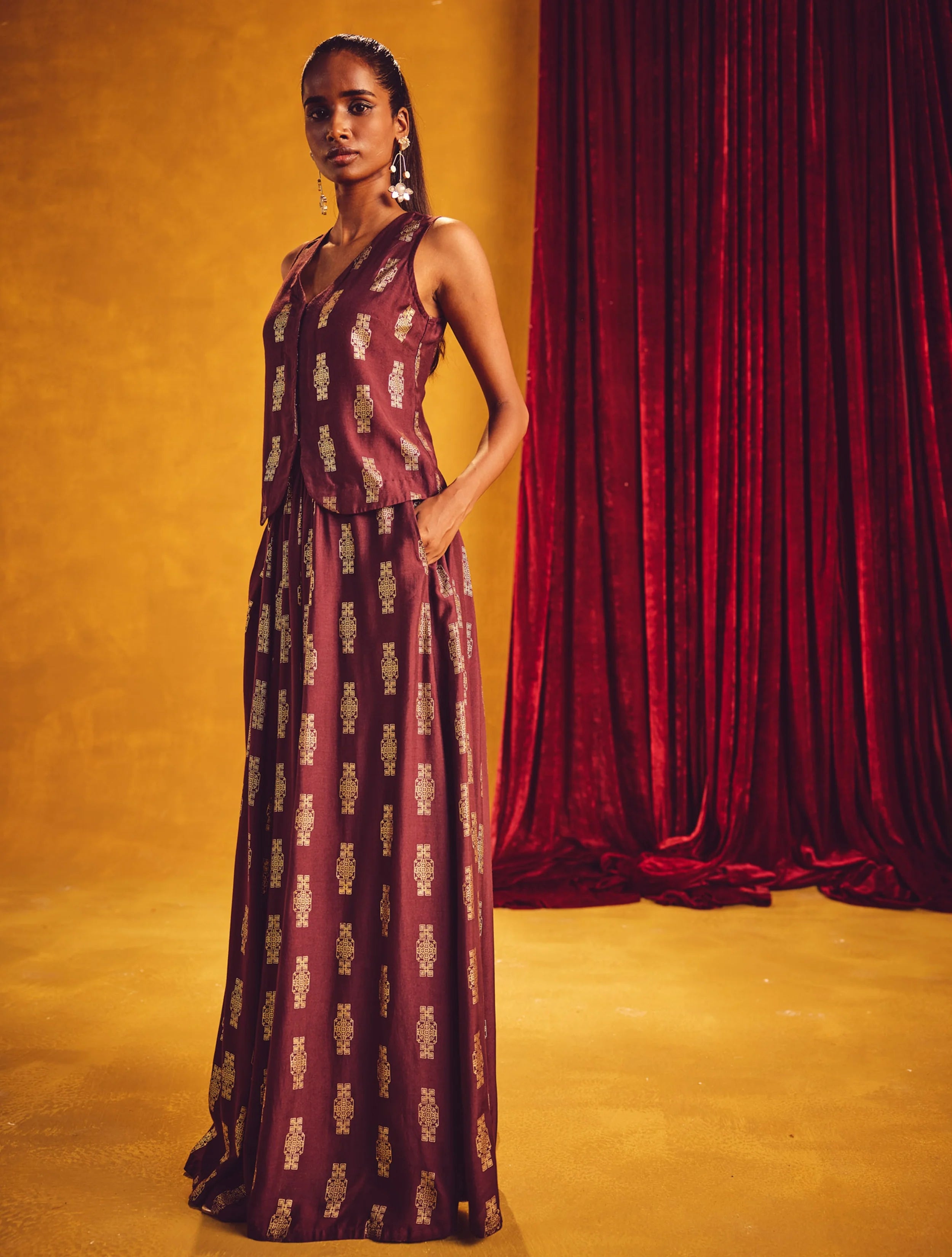 - Elevate your style and step into effortless elegance with this Cola foil printed top, paired with Cola skirt. Designed for modern grace, perfect for festive ease and gatherings.