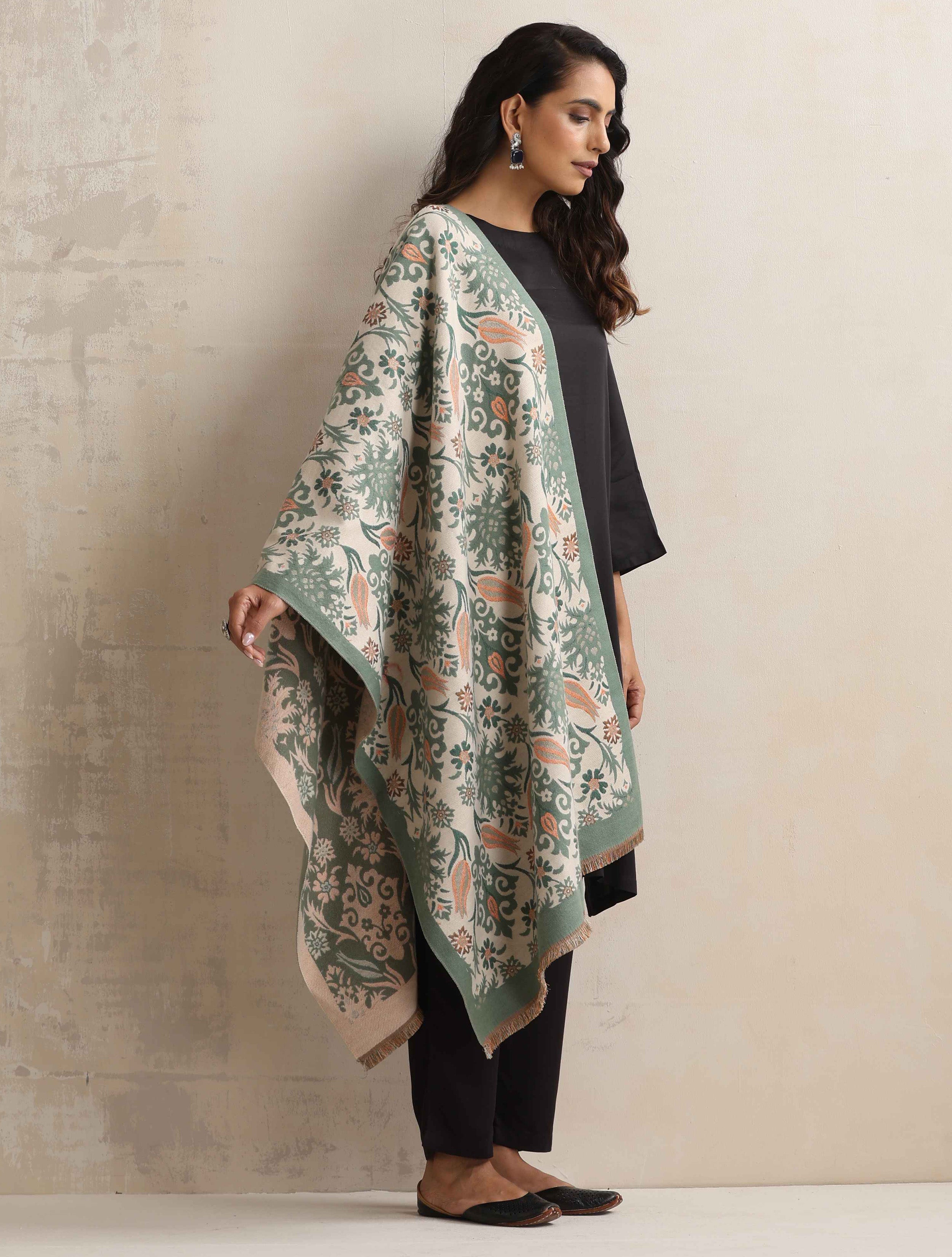 - Elevate your style with this green floral woven reversible stole, it's an ideal blend of elegance and comfort.