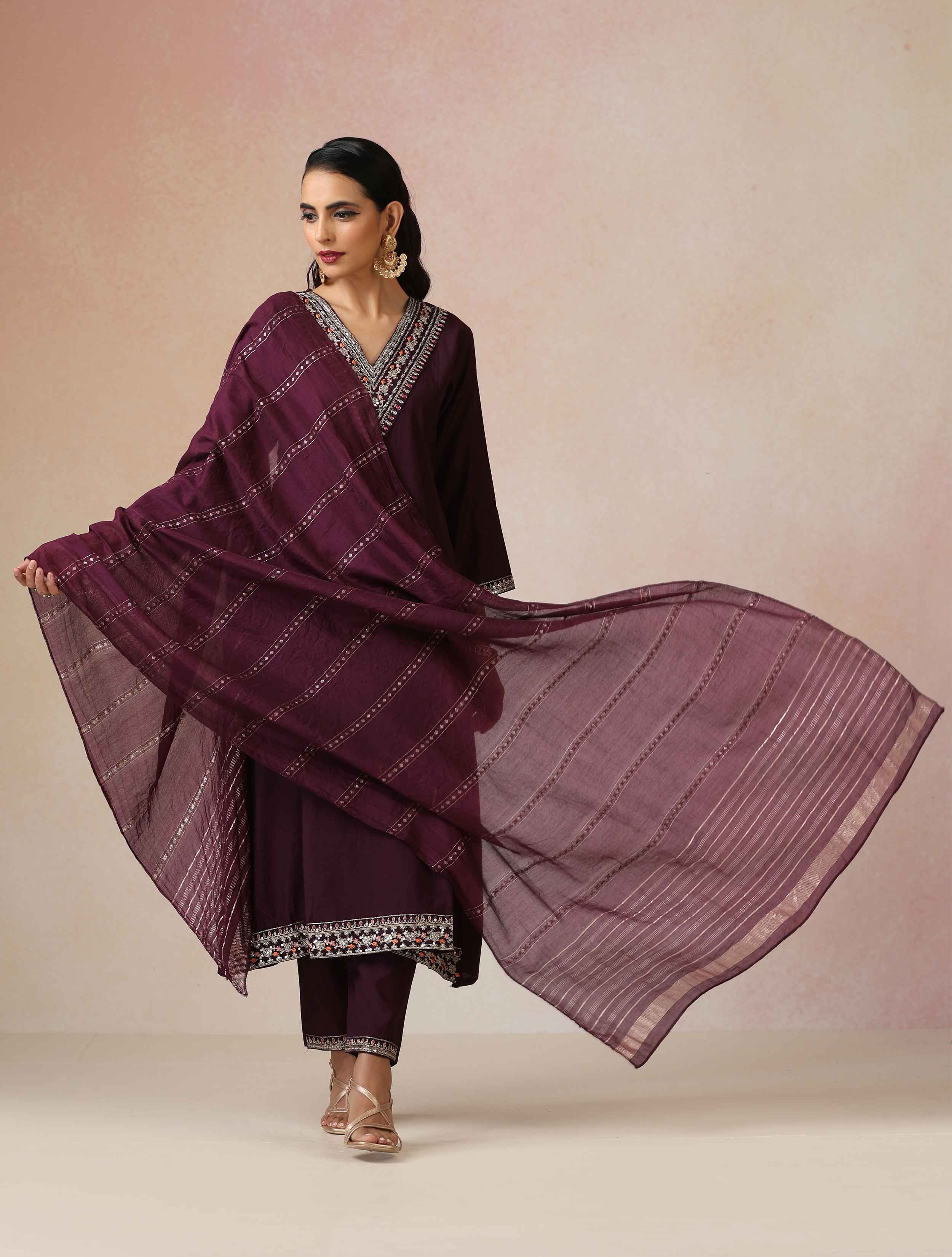 - Elevate your style and step into effortless elegance with this purple silk blend kurta, paired with purple silk blend pant and purple organza dupatta. Designed for modern grace, perfect for festive ease and gatherings.